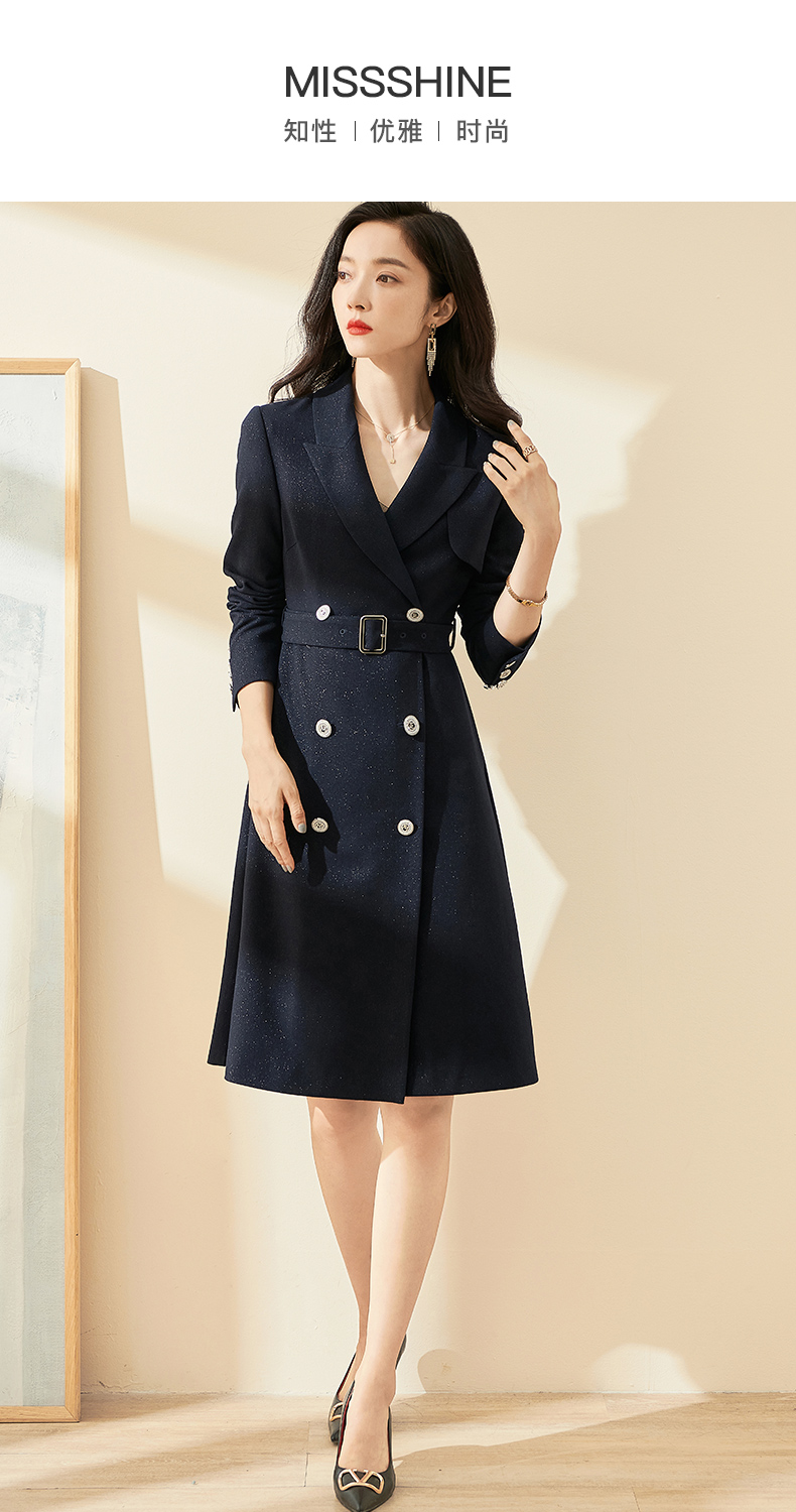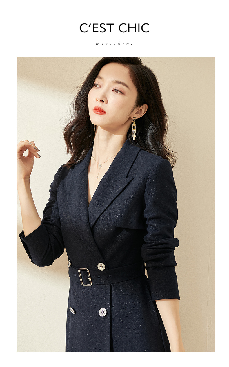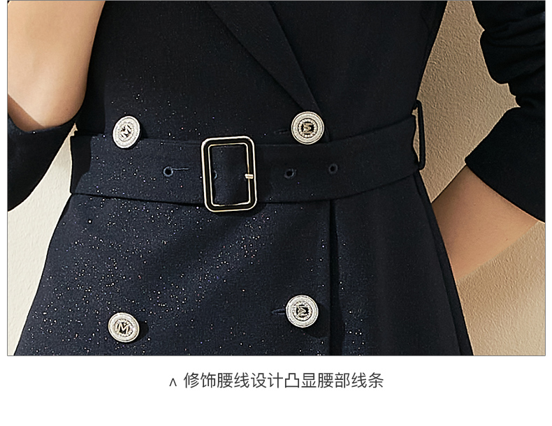 剩S/L 米思阳2025秋季时尚优雅满天星连衣裙收腰显瘦长袖西装裙0006