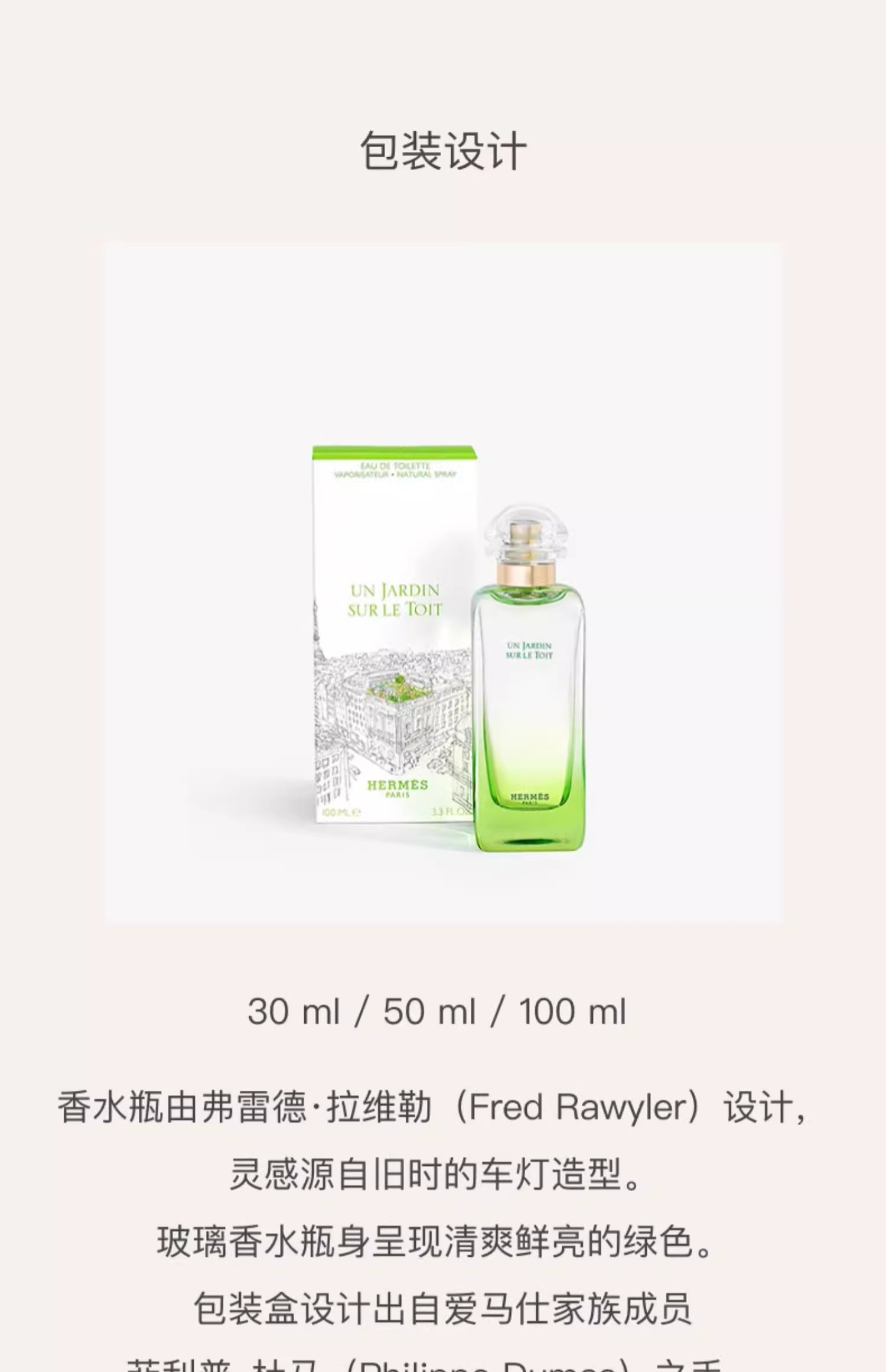 Hermes爱马仕屋顶花园淡香水50ml果香馥奇果香调 送香水礼品袋【CDF】