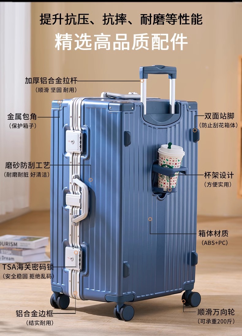 源自德国品牌【大容量巨能装 杯面杯架设计 送箱套】朗客学生行李箱男大容量30寸万向轮出国旅行超新款皮拉杆箱32女