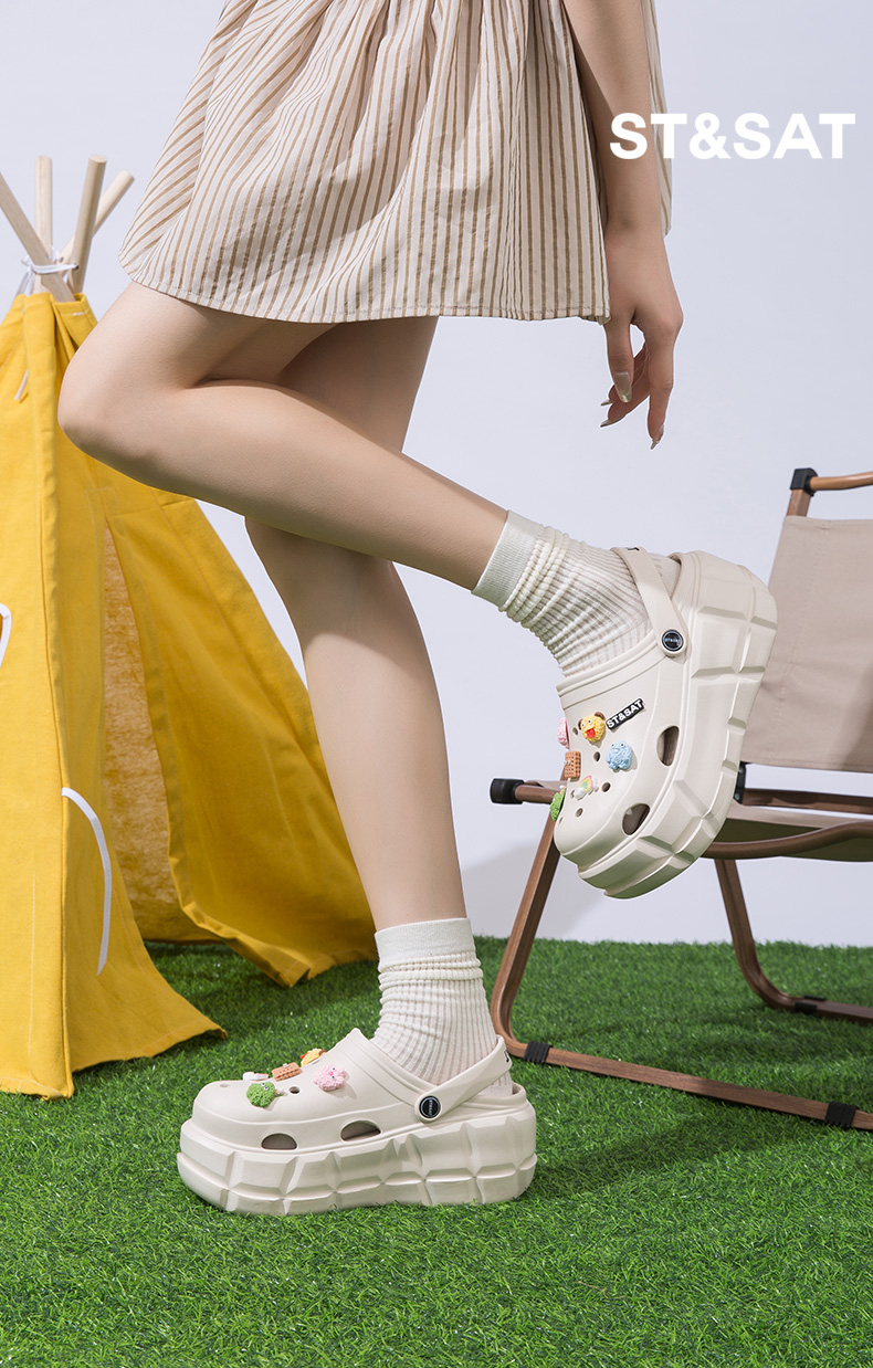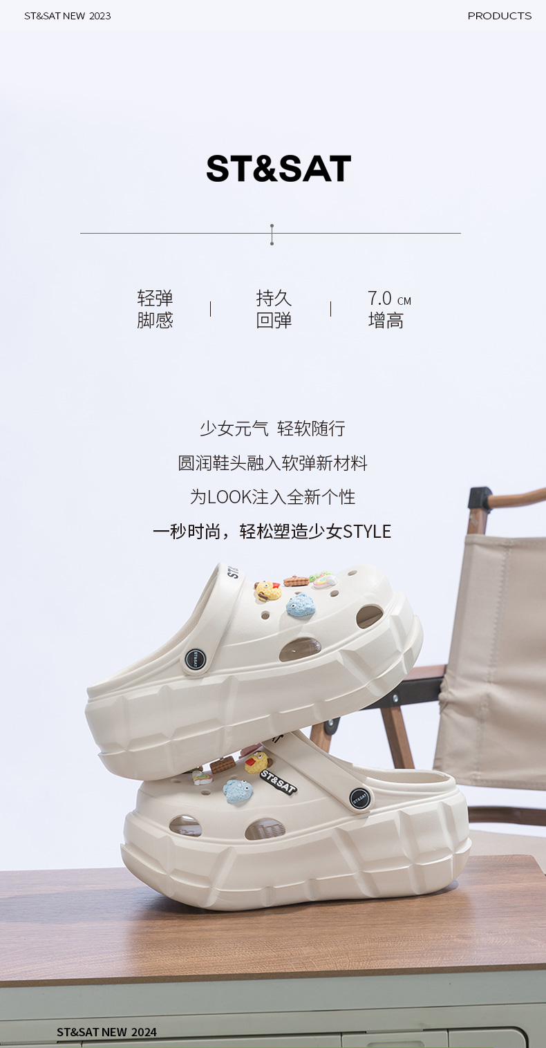 星期六沙滩防滑厚底增高洞洞鞋SSC211027K