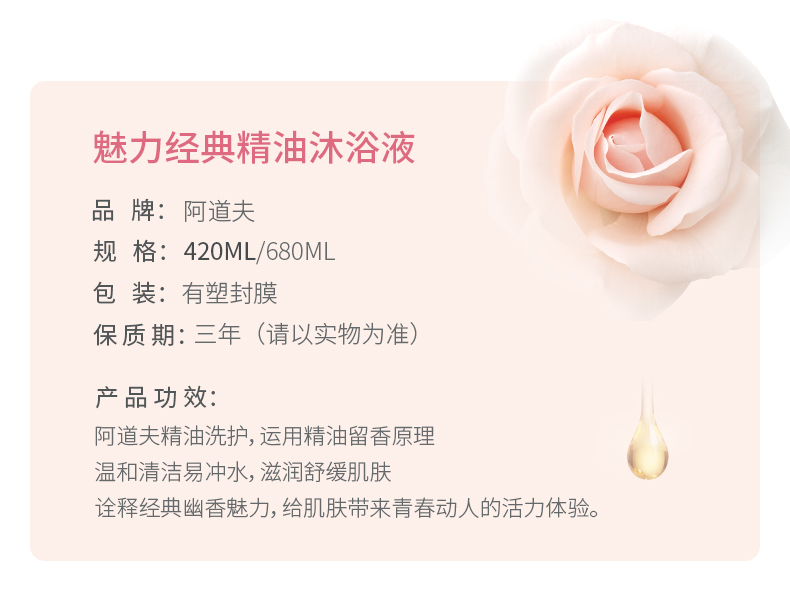 阿道夫精油香护理专研精油沐浴液(魅力经典)420ml)