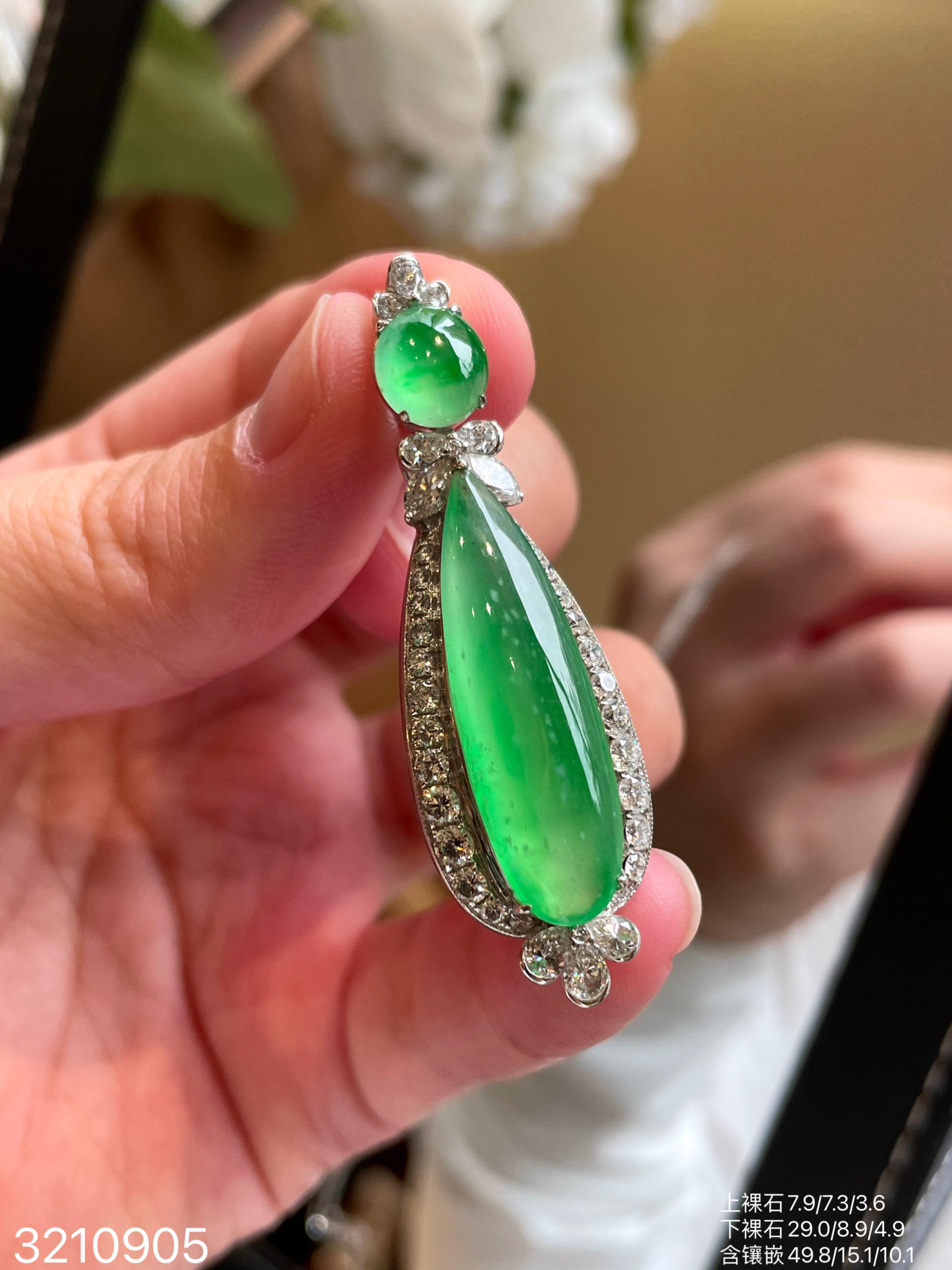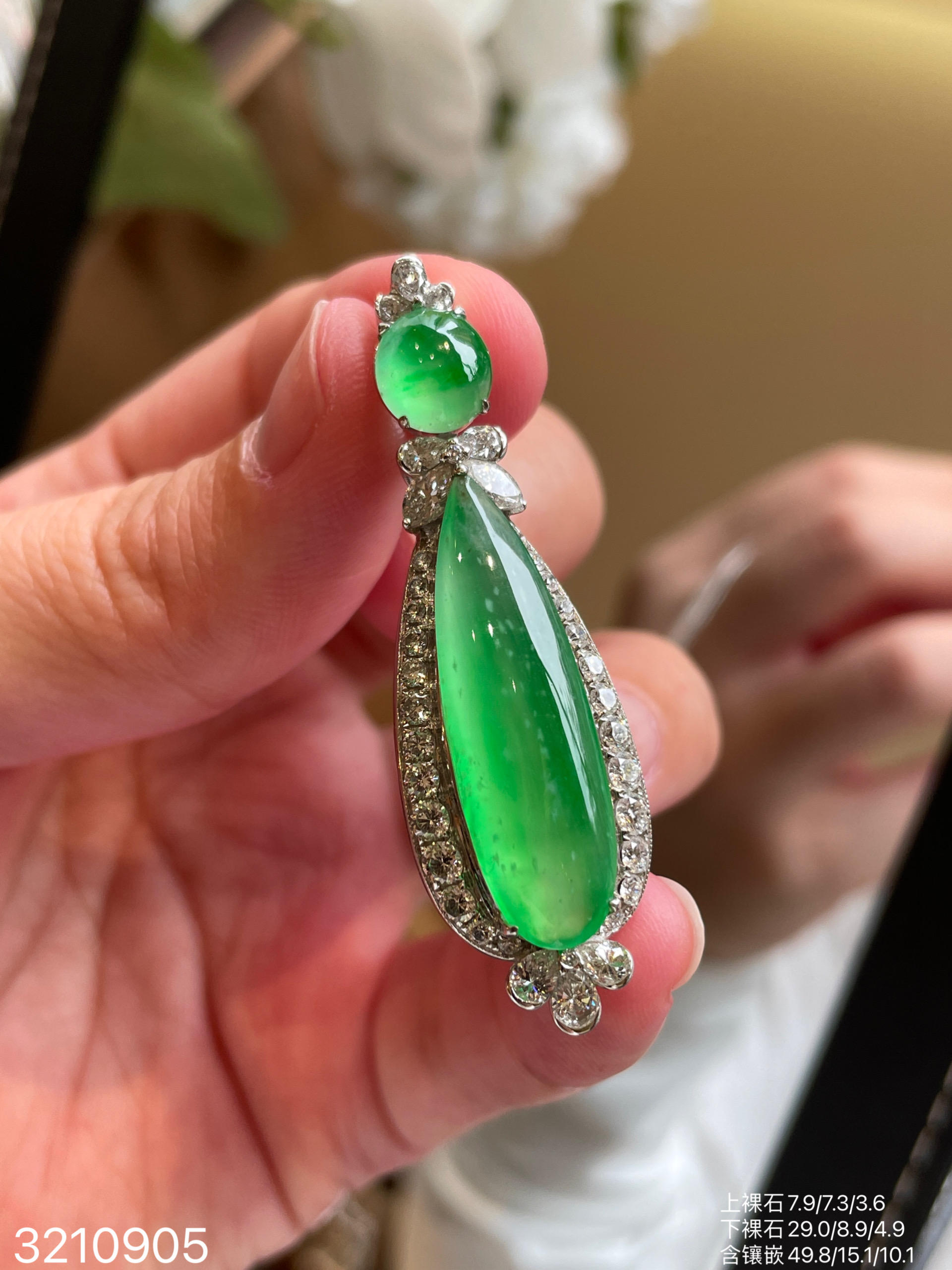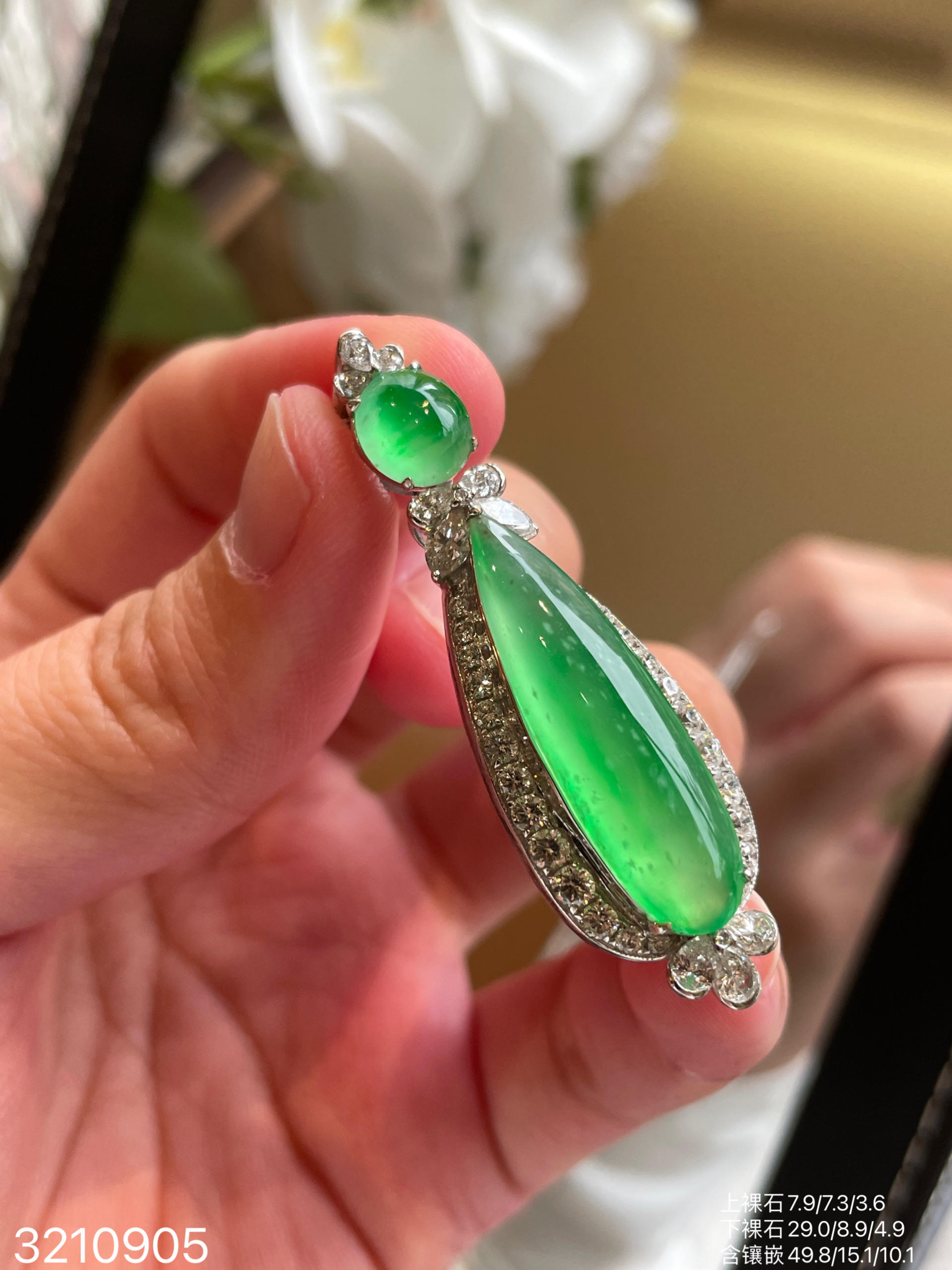 玻璃木艳绿水滴吊坠 99999【3210905】