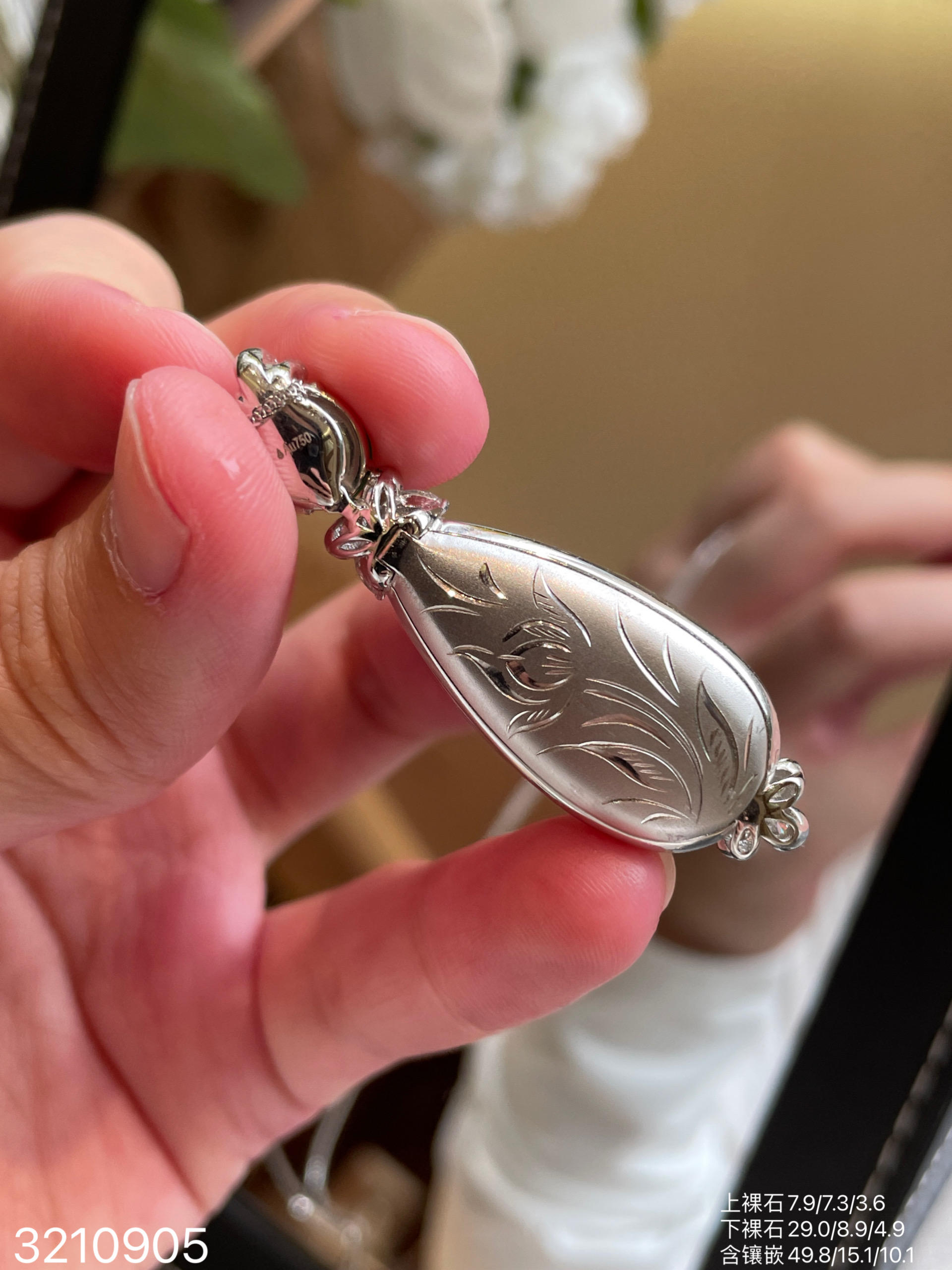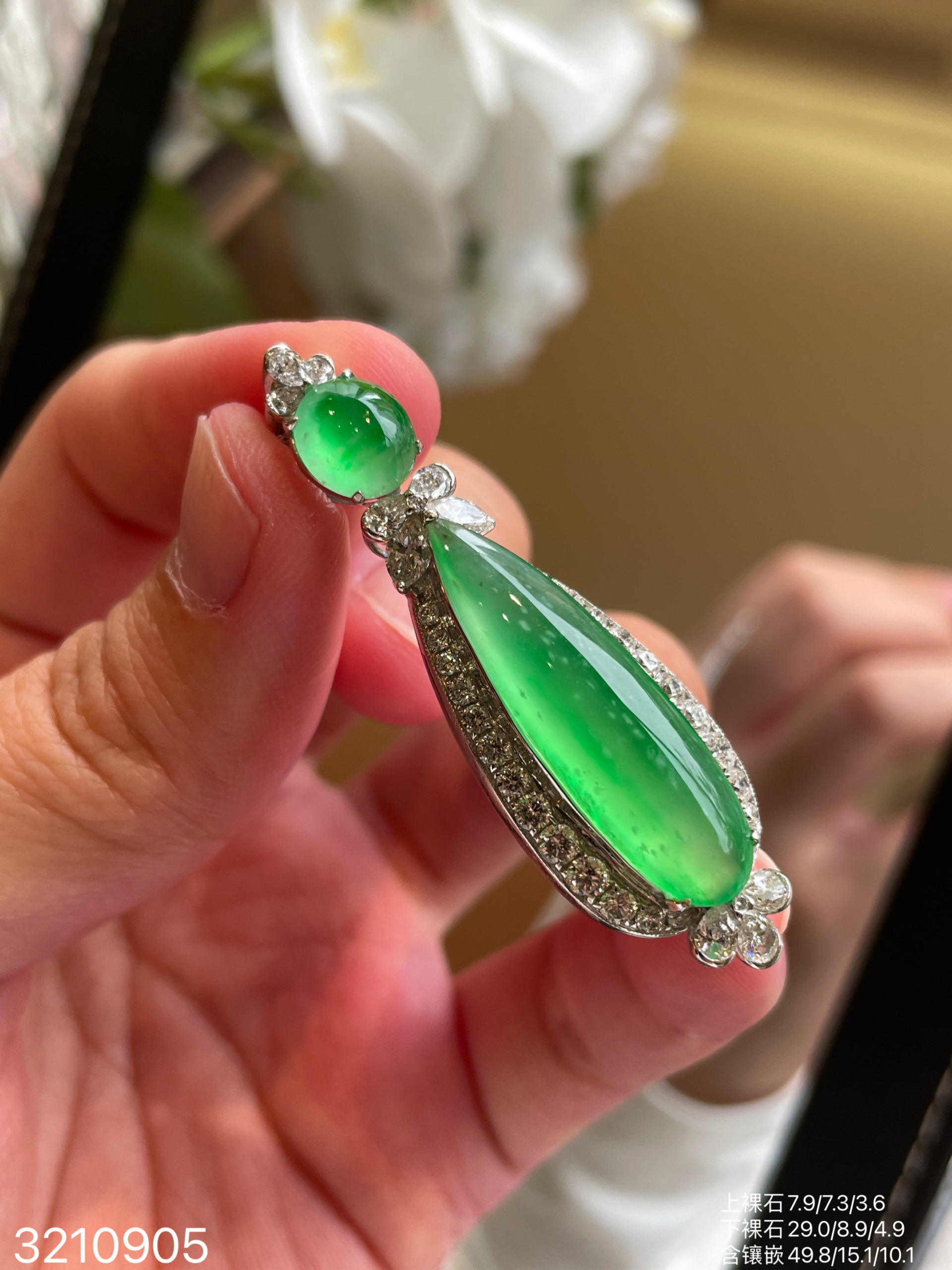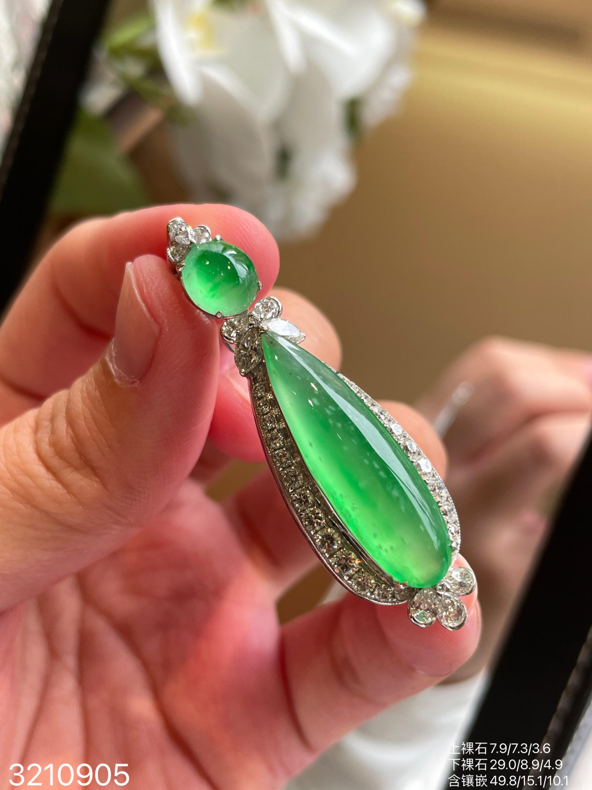 玻璃木艳绿水滴吊坠 99999【3210905】