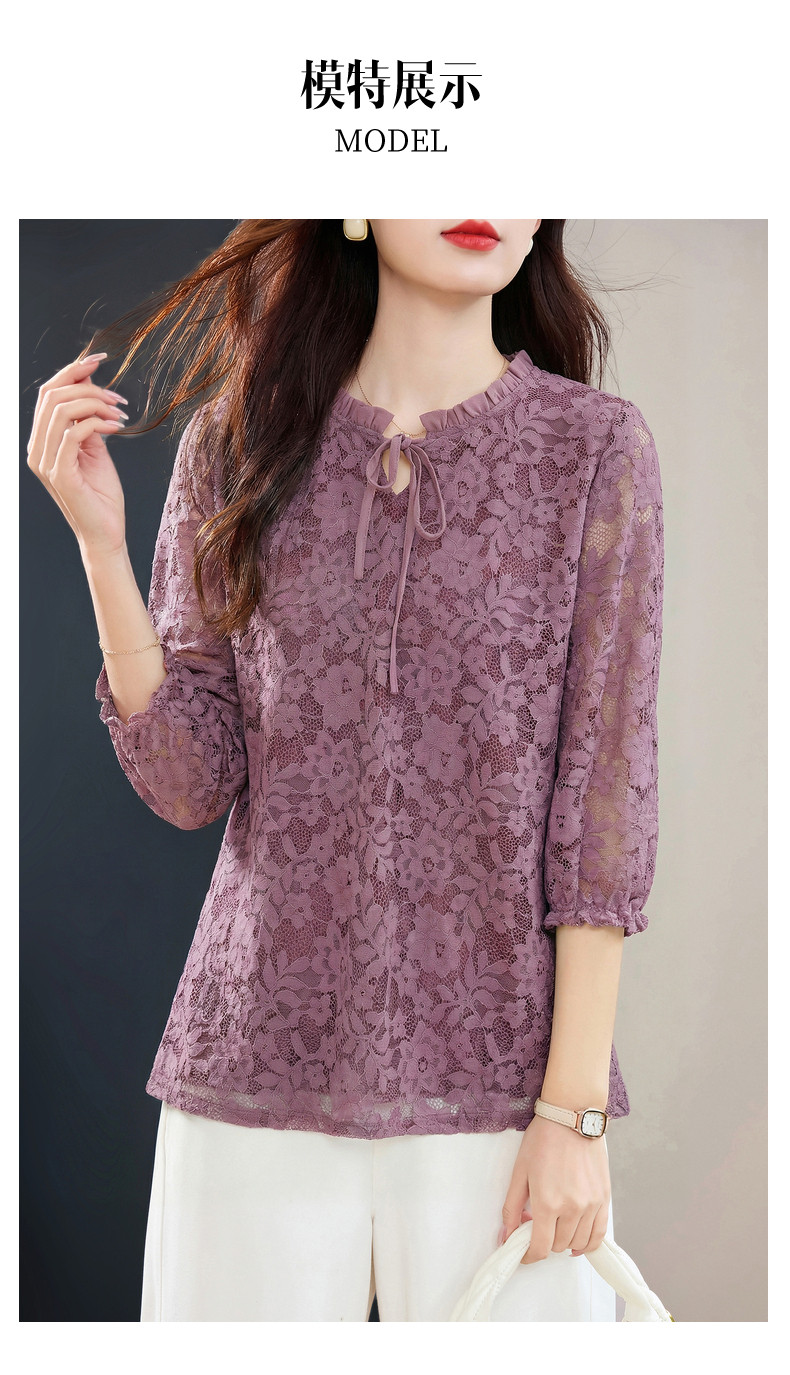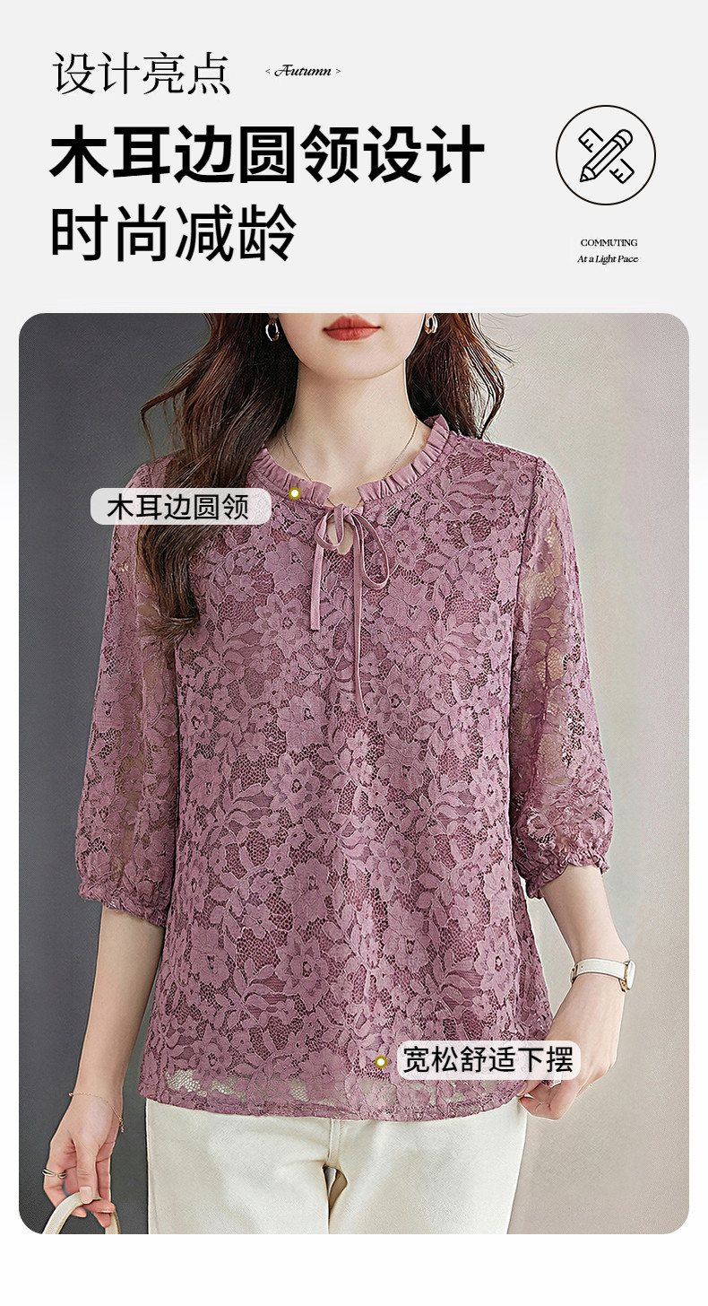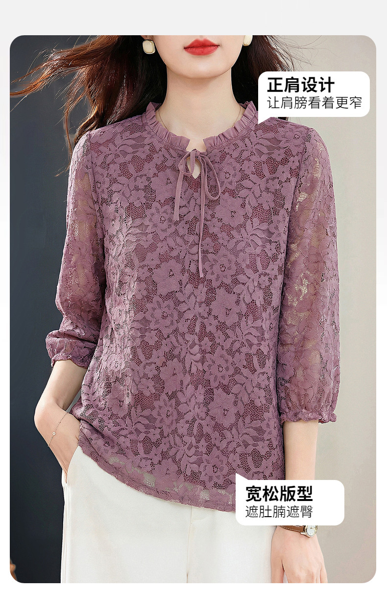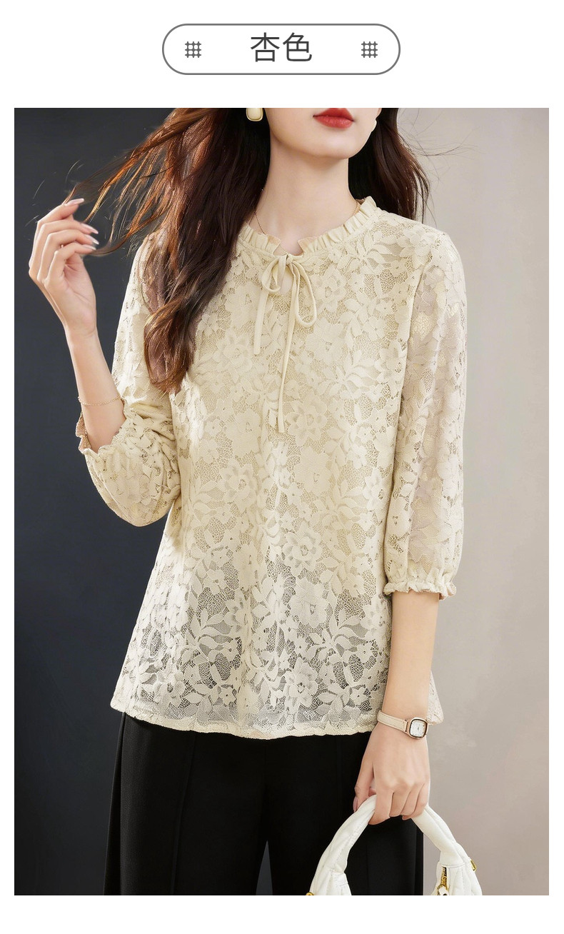 七分袖蕾丝衫女2026新款早春季中袖上衣高端洋气小衫中长款打底衫