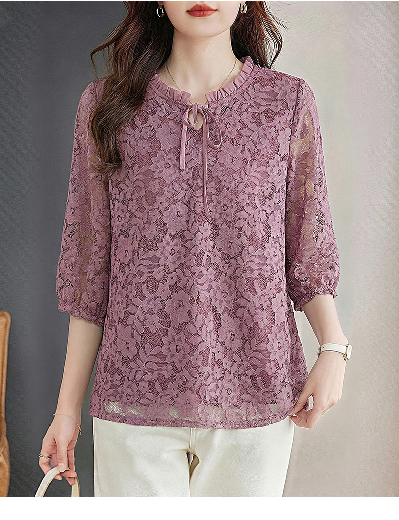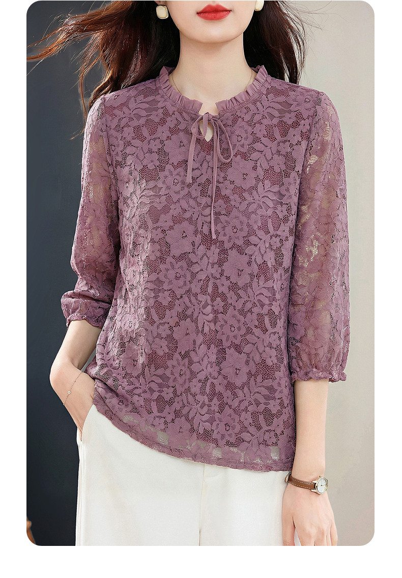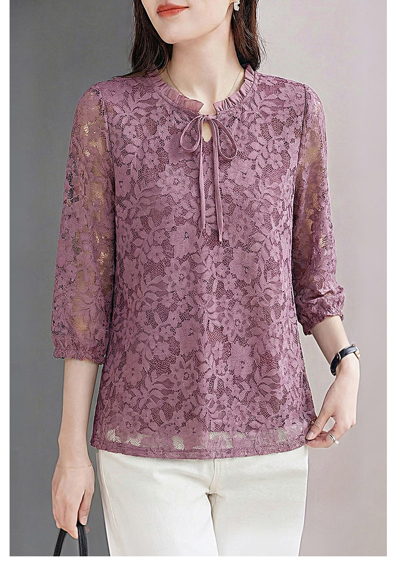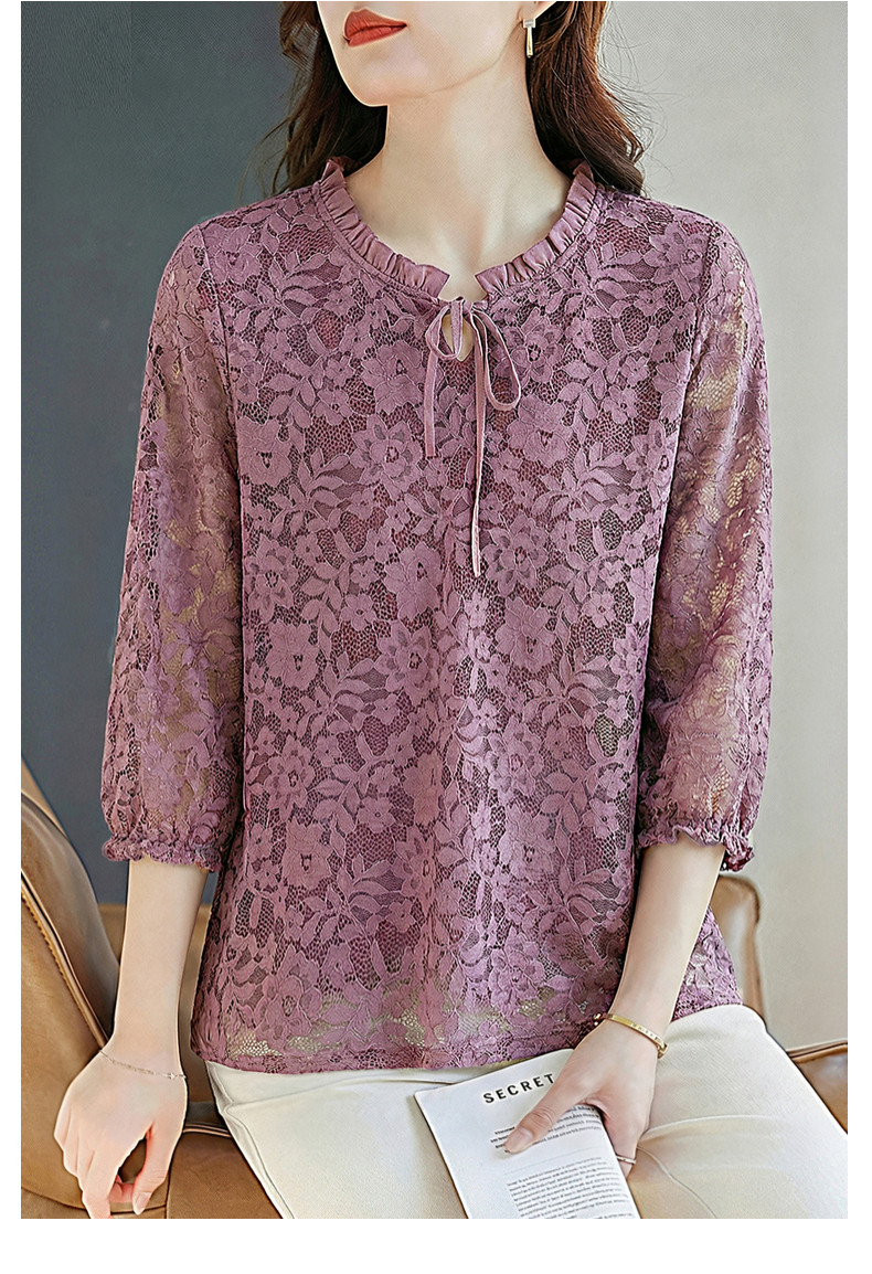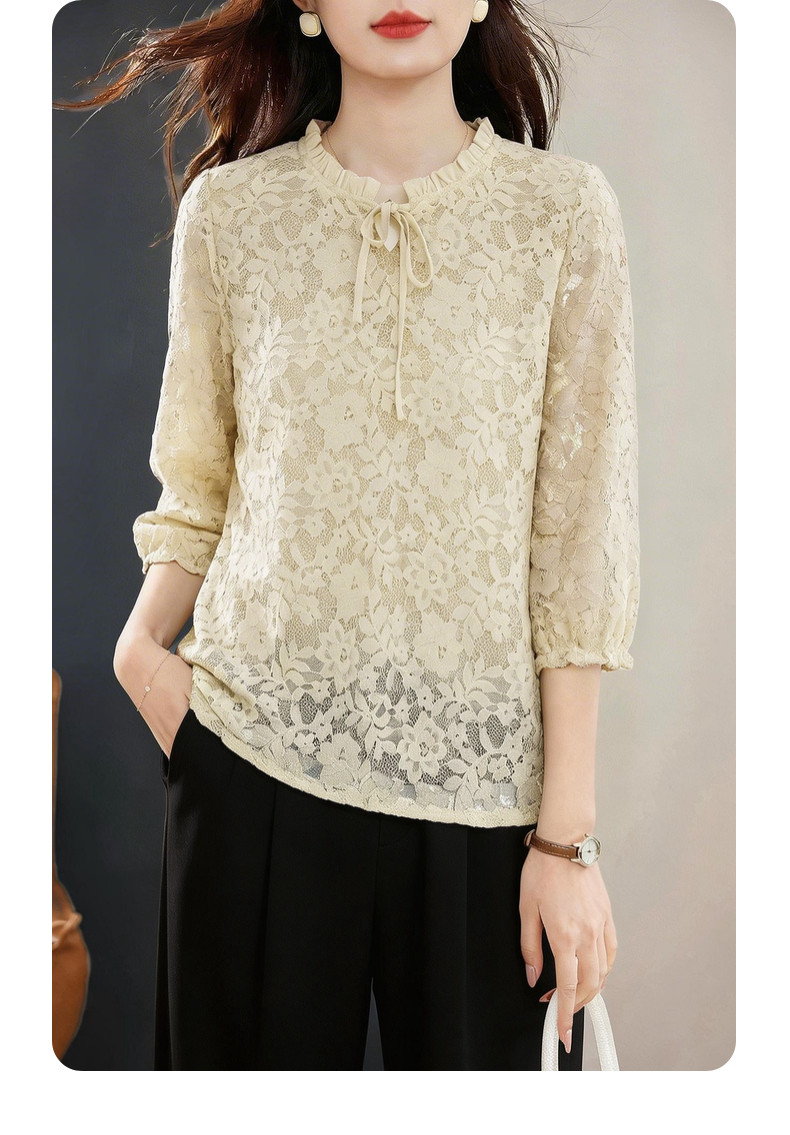 七分袖蕾丝衫女2026新款早春季中袖上衣高端洋气小衫中长款打底衫