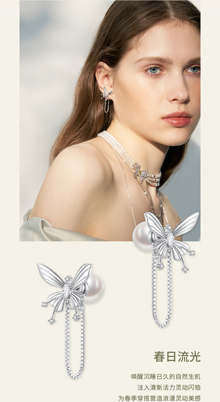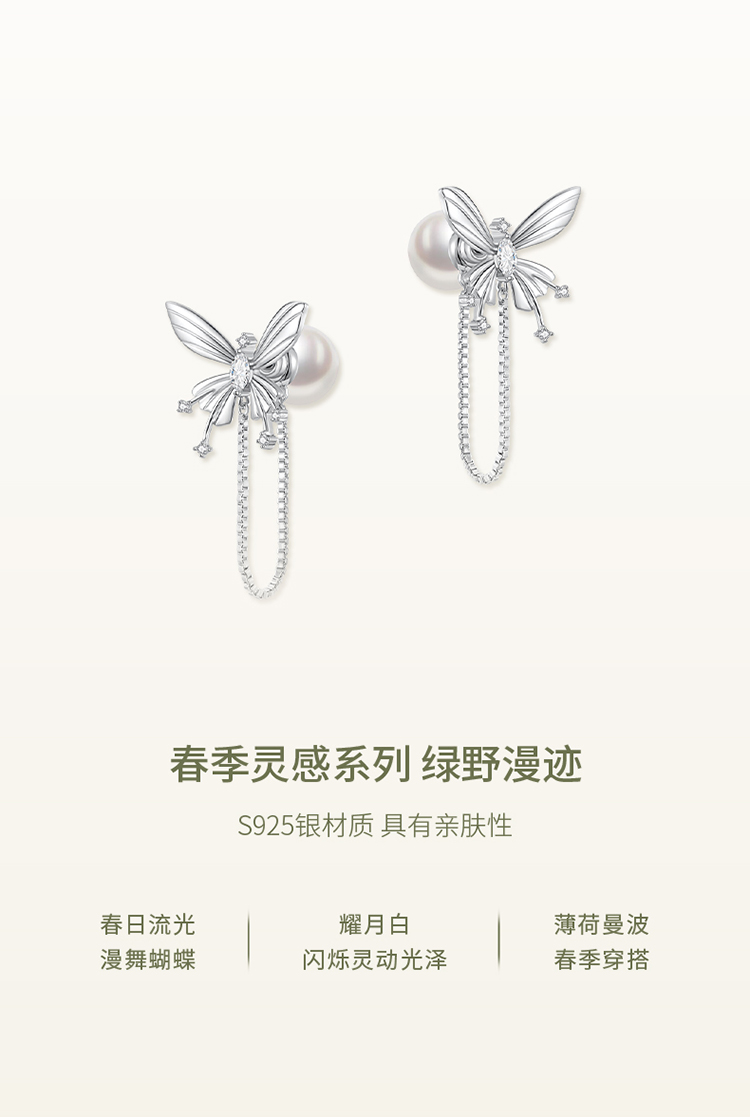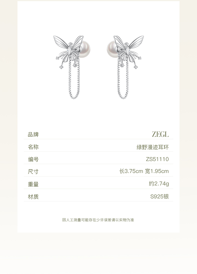 ZEGL设计师绿野漫迹系列925银蝴蝶耳环2024新款高级感耳钉耳饰女