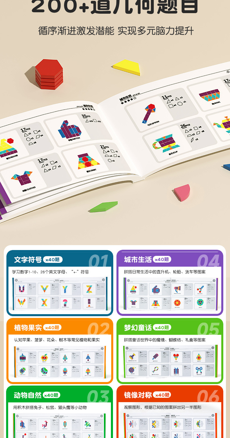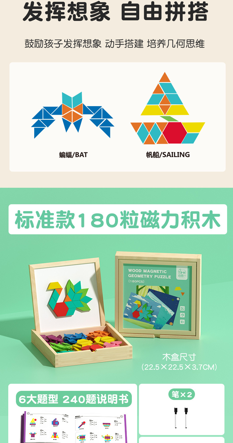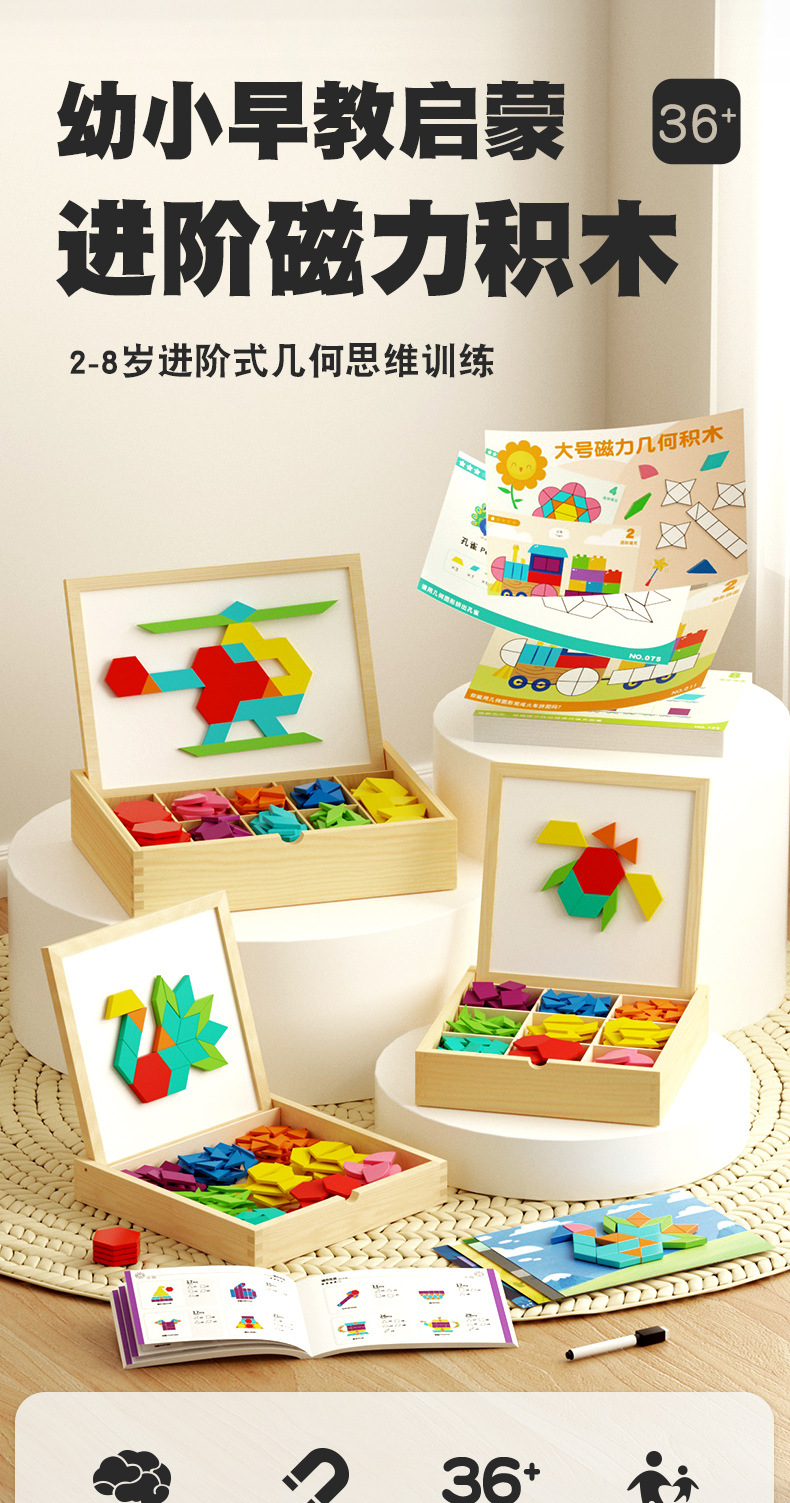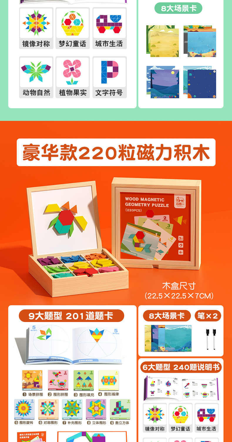 【磁力几何趣玩盒】磁力拼图 七巧板 几何积木 宝宝幼儿园 益智力3到6岁男孩女孩儿童玩具220pcs