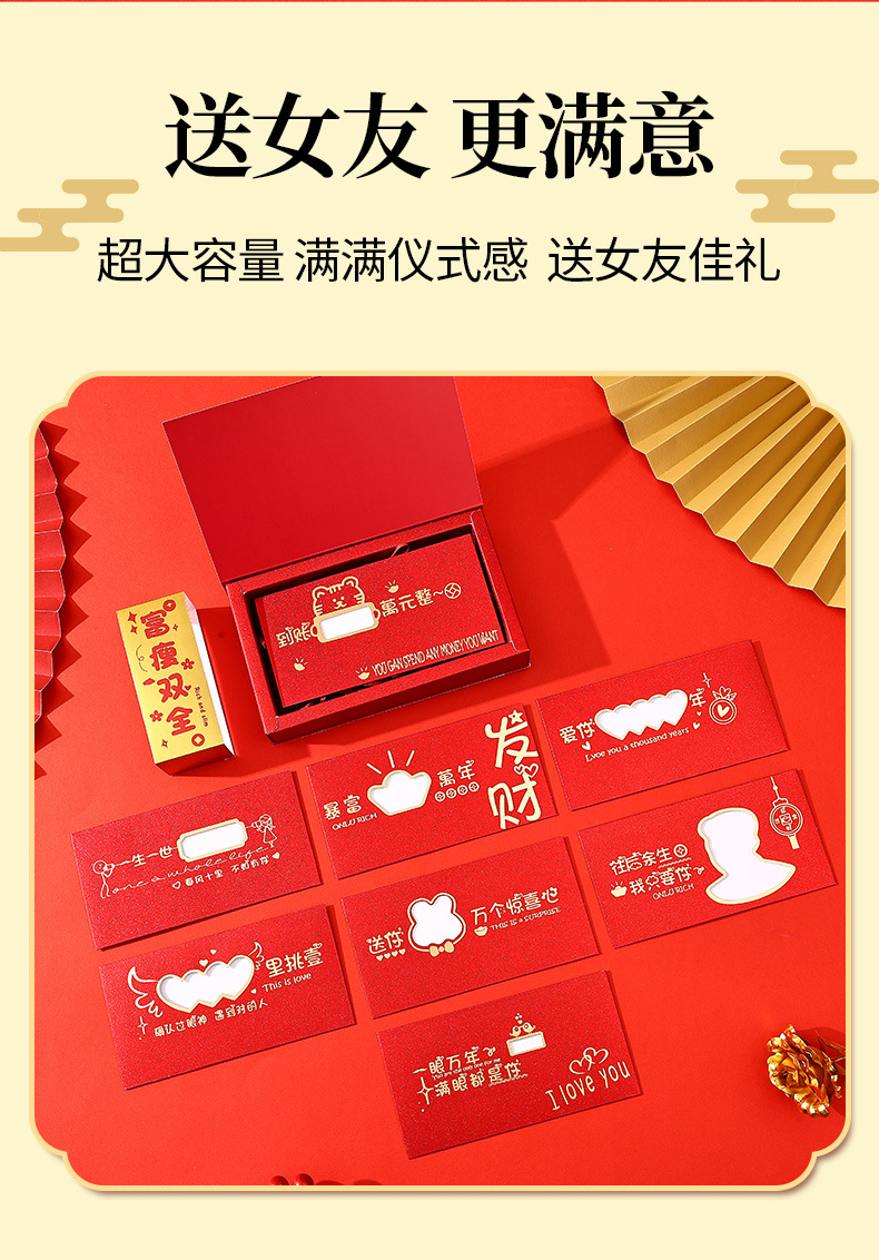 「礼盒8个装」新款情节创意磨砂镂空红包利是封送女朋友男友惊喜生日纪念日礼物