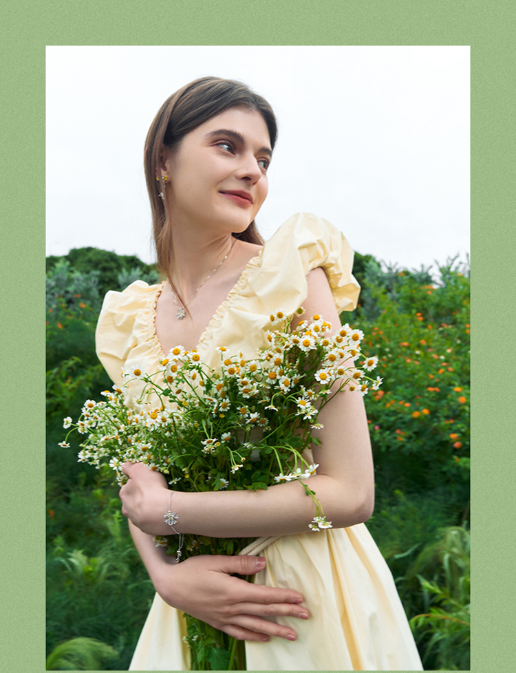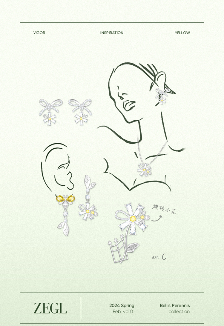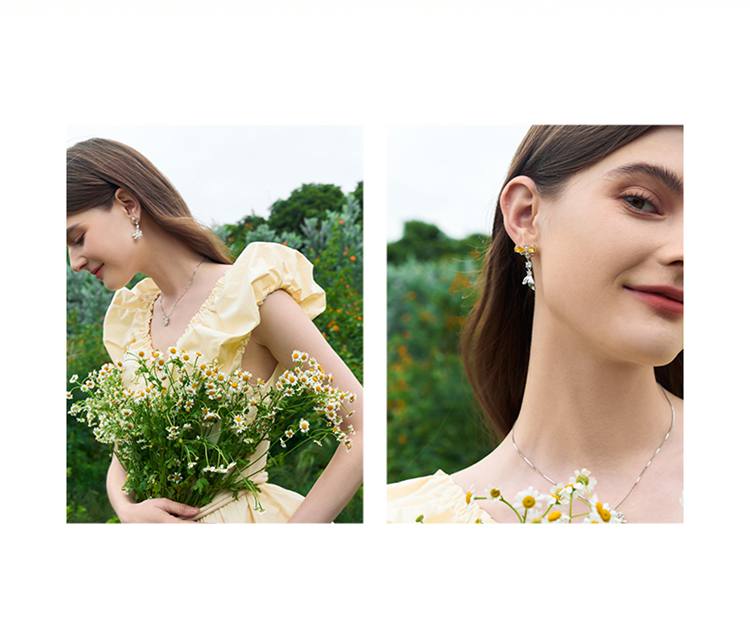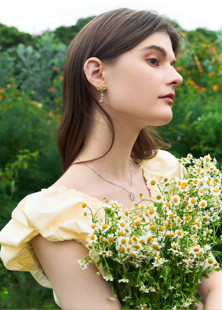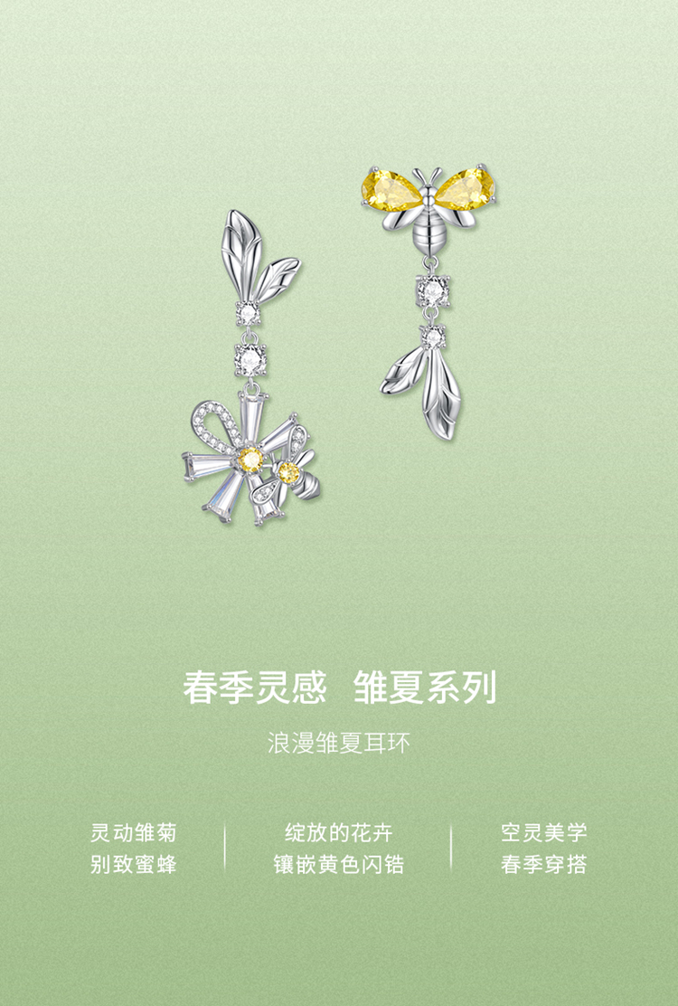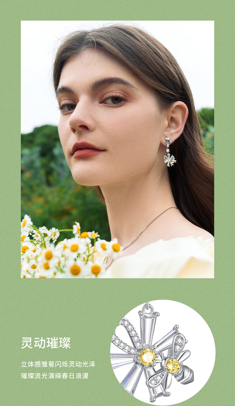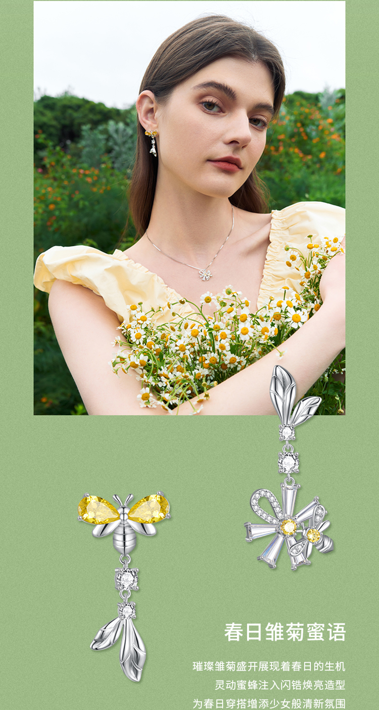 ZEGL设计师雏夏系列雏菊蜜蜂耳环女金色小众独特耳钉925银针耳饰