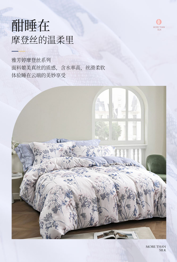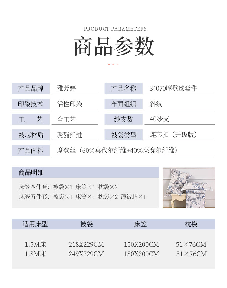 雅芳婷摩登丝五件套专柜同款套件被套薄被芯床笠枕套一对连芯扣