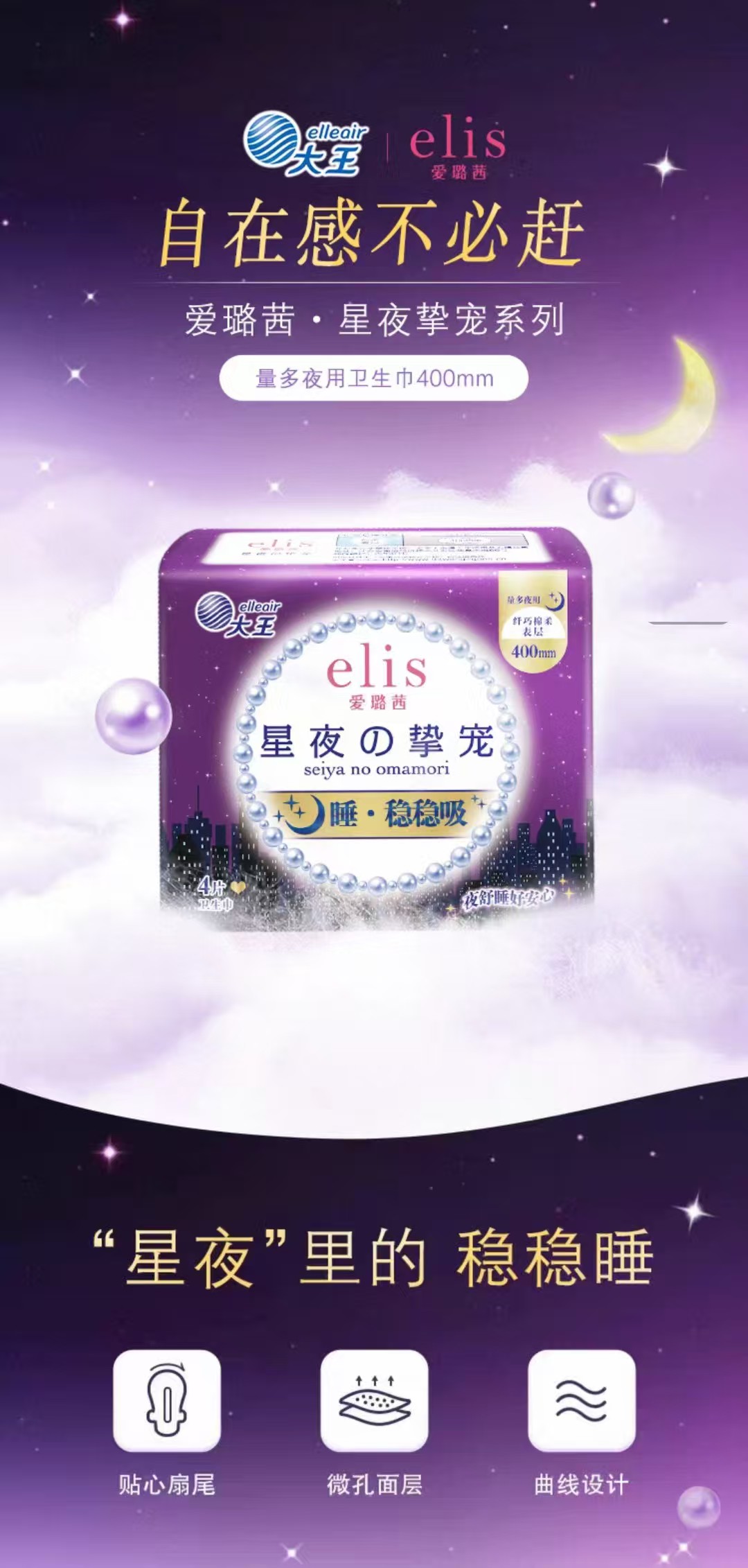 elis大王 夜用卫生巾 星夜挚宠系列 纤巧棉柔