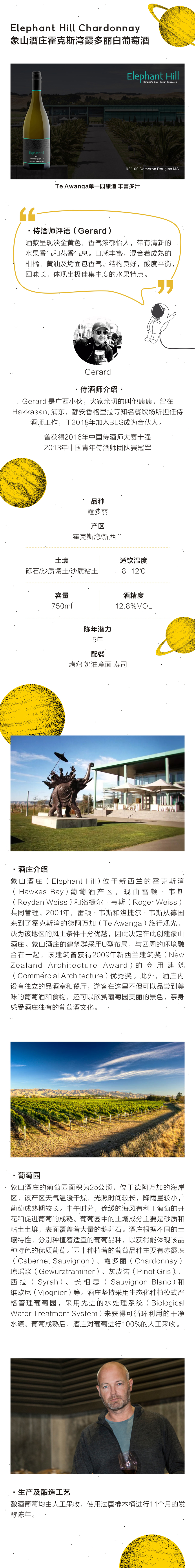 象山酒庄霍克斯湾霞多丽白葡萄酒 2019 Elephant Hill Chardonnay