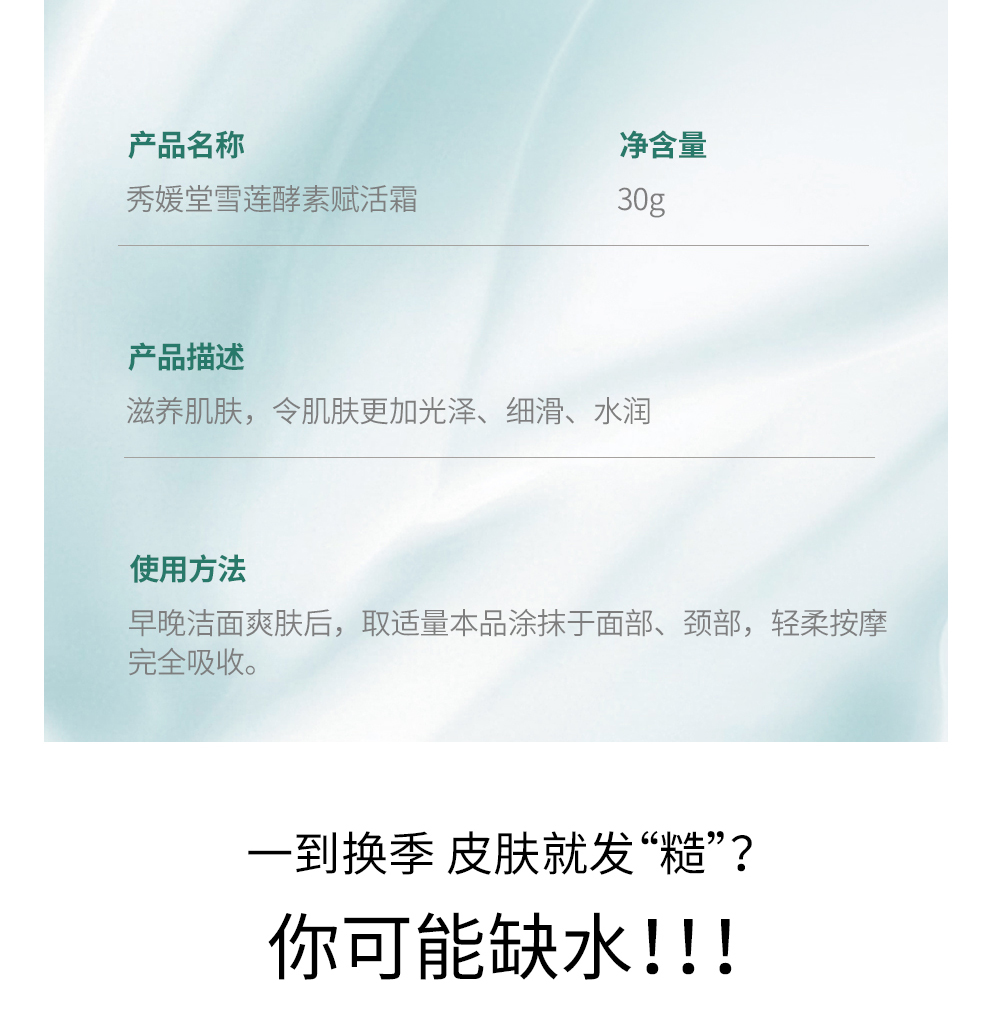 秀媛堂雪莲酵素赋活霜30g