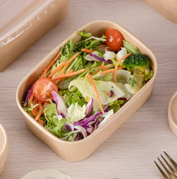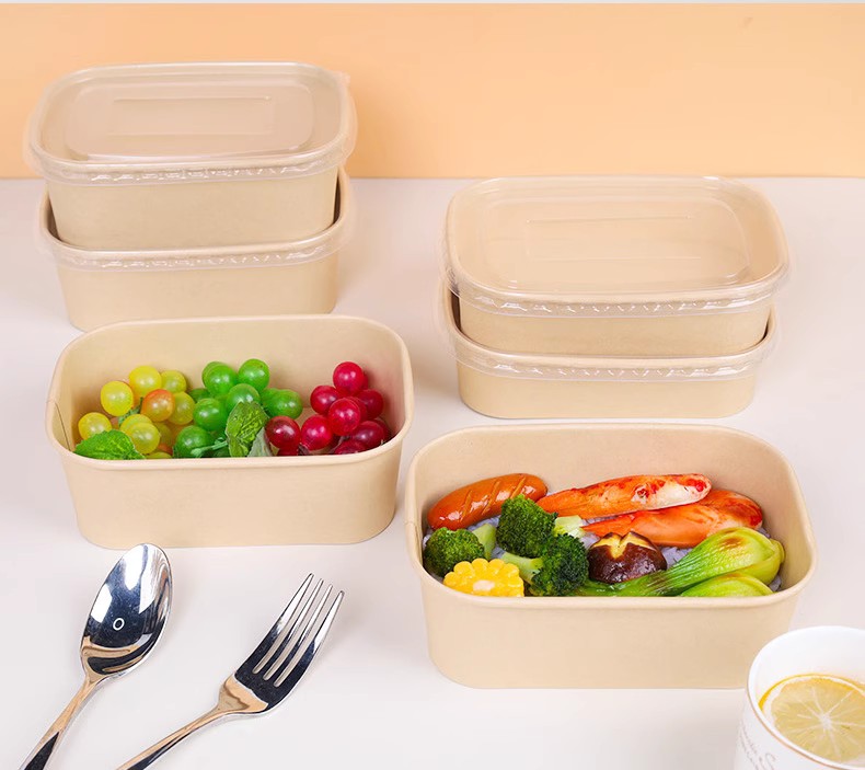 牛皮纸长方盒带盖 880ml 一次性饭盒餐盒外卖打包盒子寿司盒沙拉碗水果野餐盒便当盒