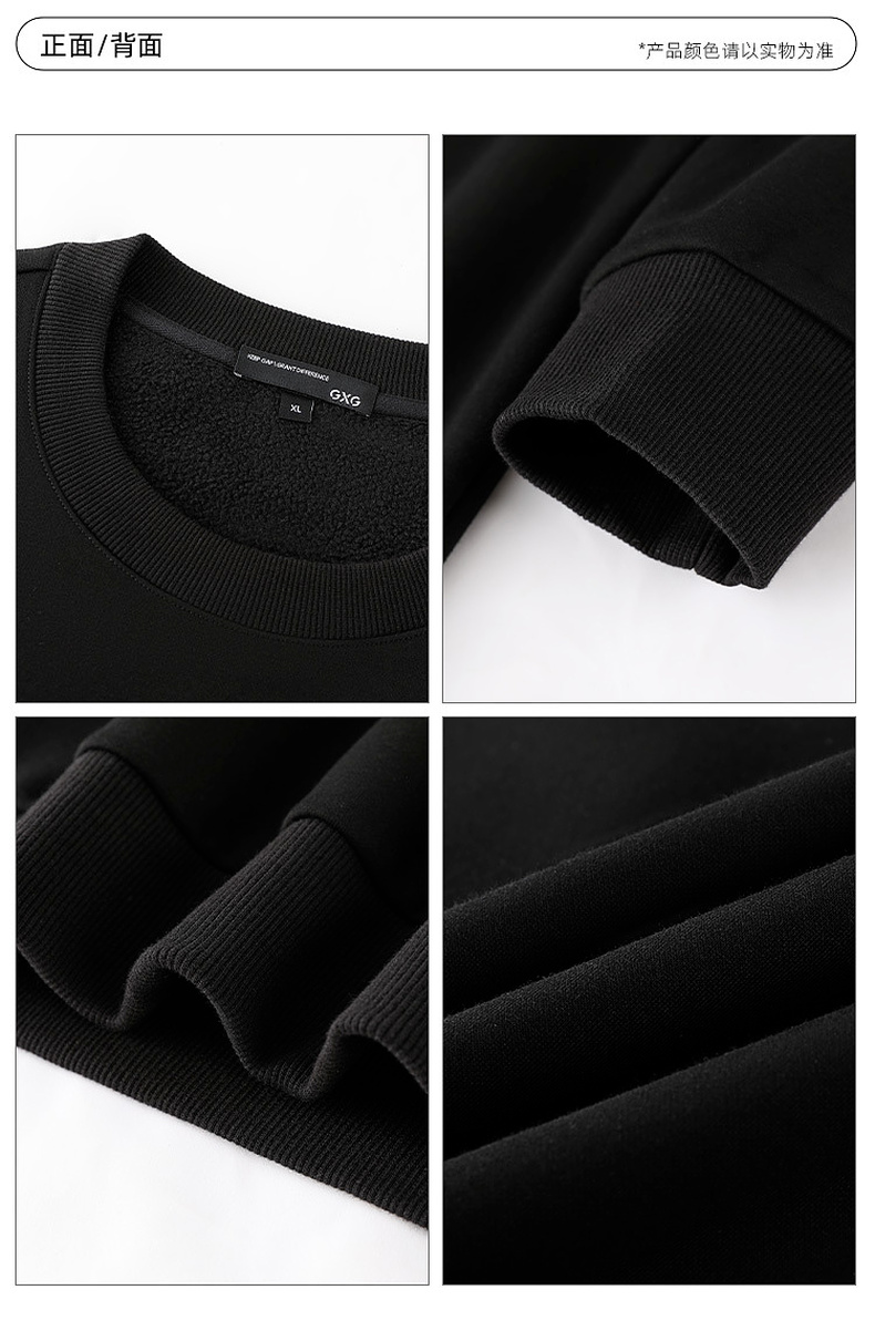 GXG男装春季简约纯色男士圆领加绒卫衣K&C