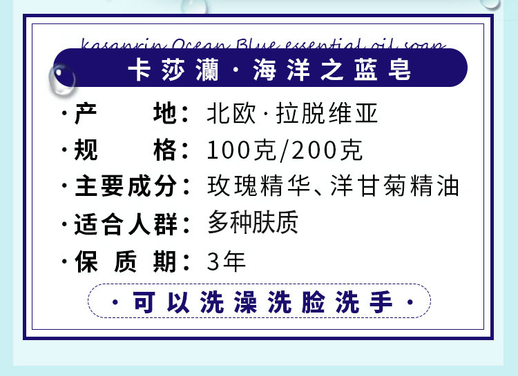 卡莎灡海洋之蓝精油皂,洁净润肤,水润嫩颜。