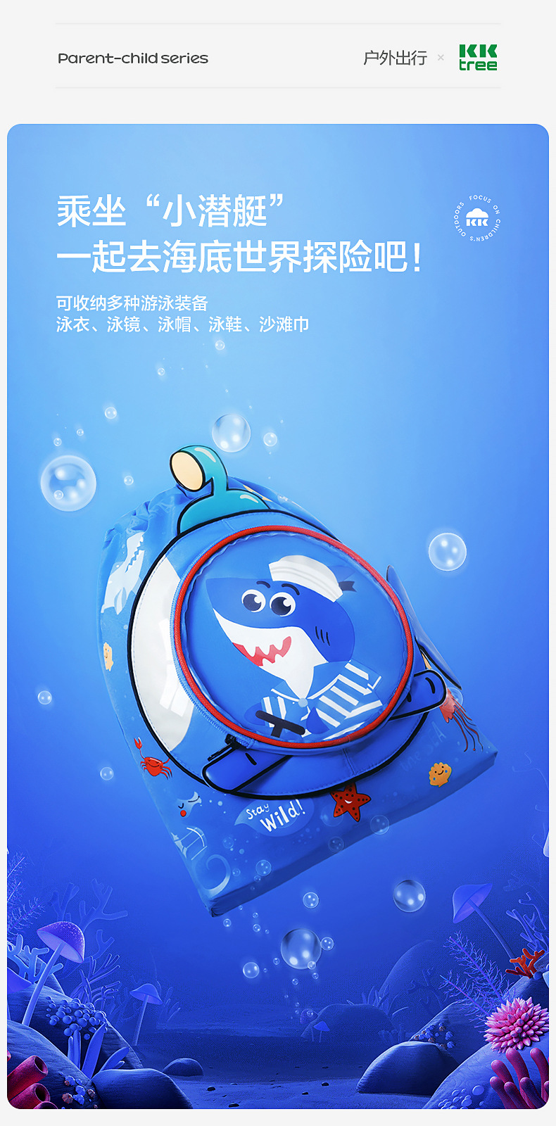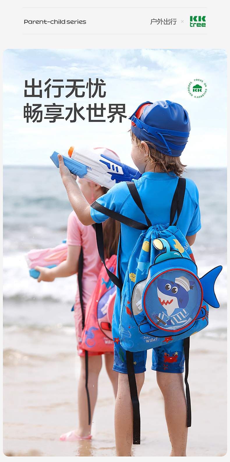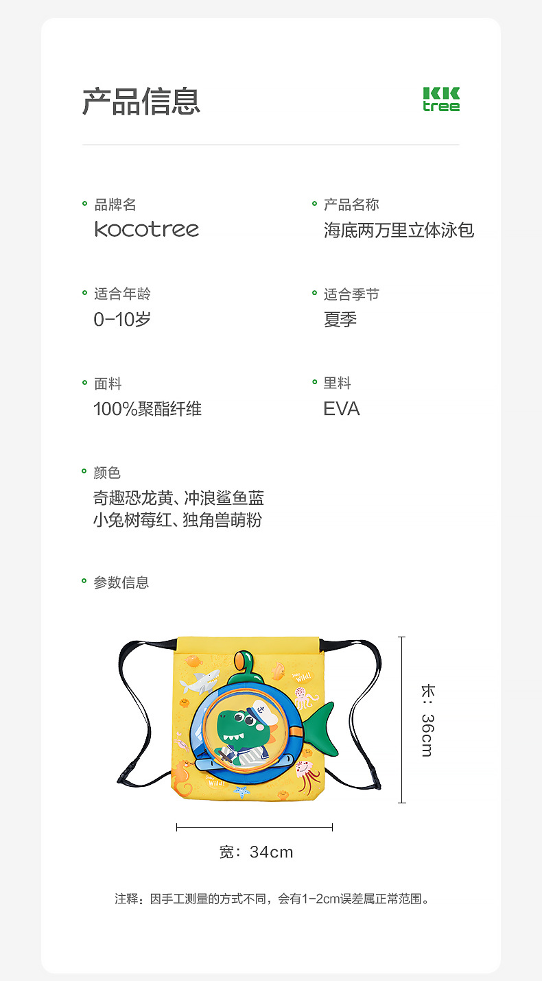 KK树儿童干湿分离游泳包男女童专业防水包沙滩装备双肩便携收纳包