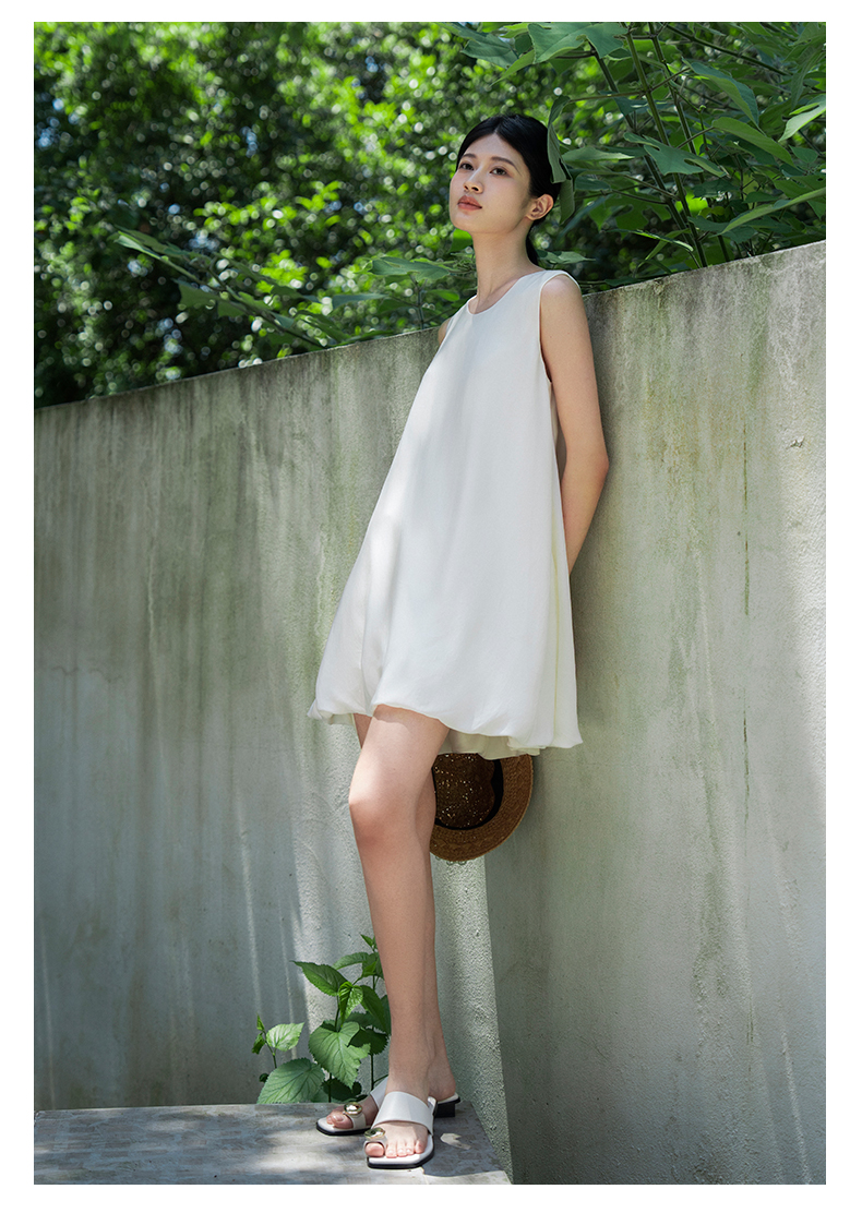 oldcolour夏季新款设计感小众简约气质宽松无袖连衣裙女Q251001A1