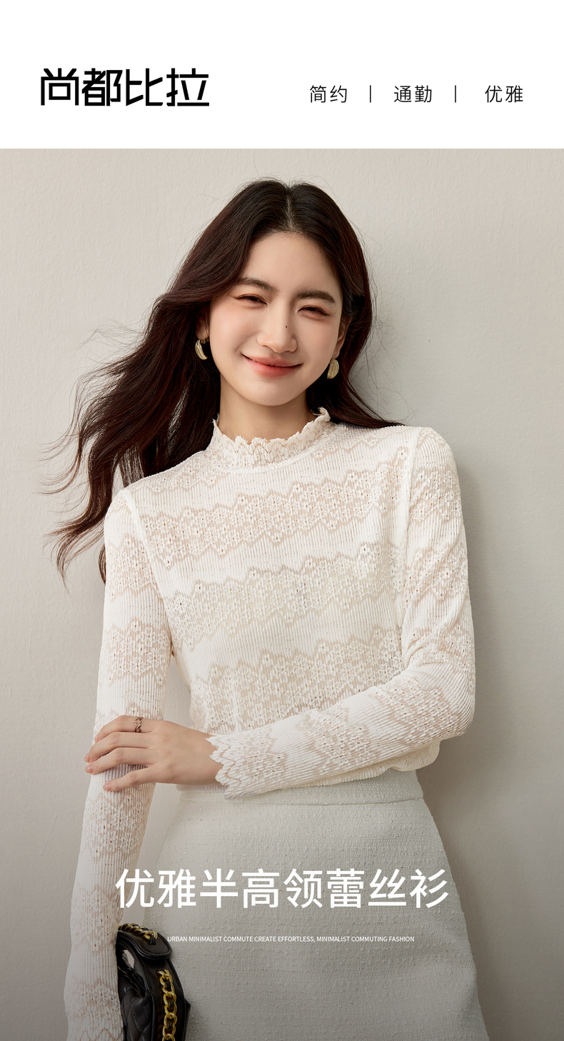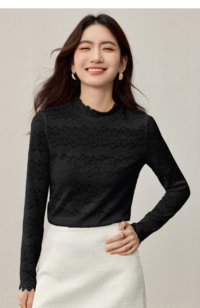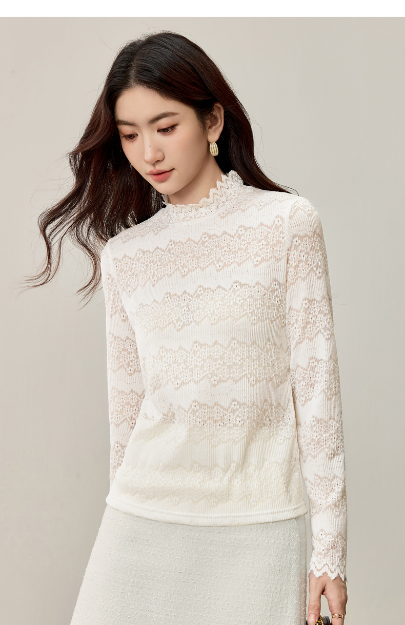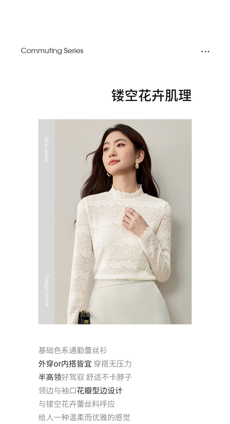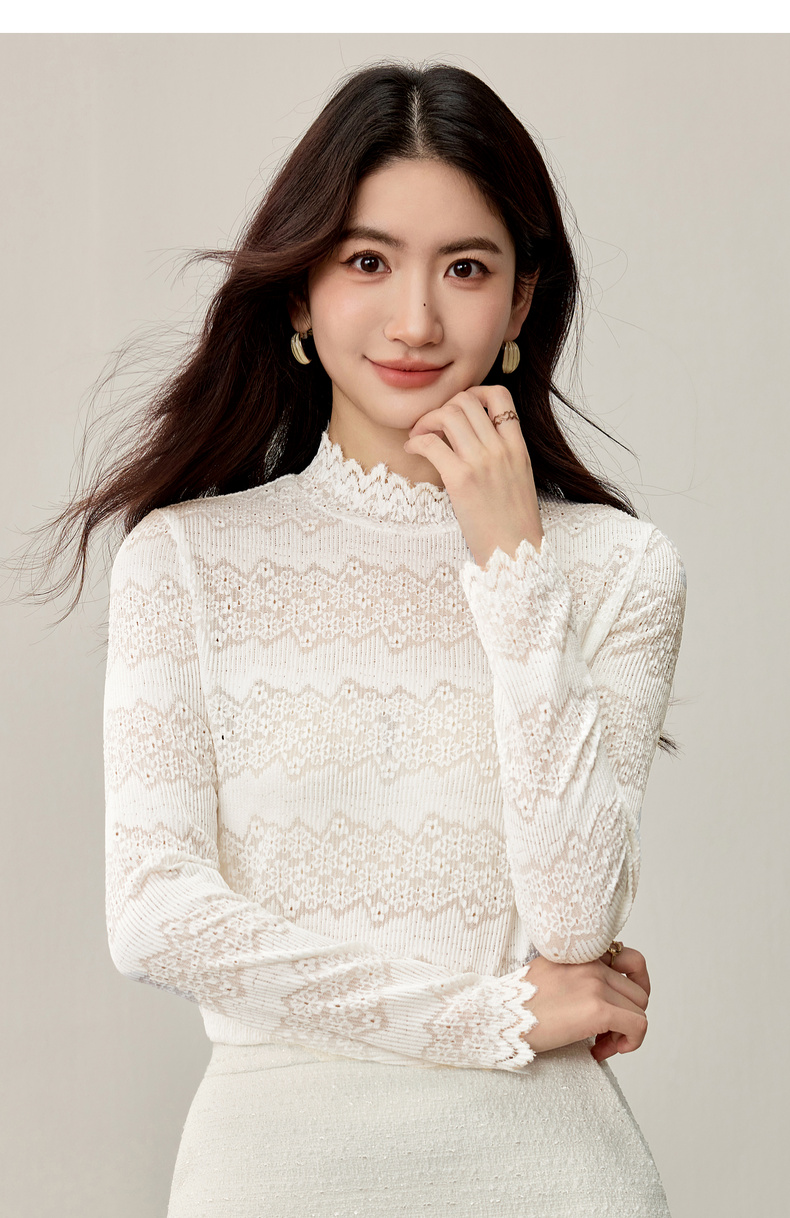 【内购】【外穿内搭】优雅通勤半高领镂空花卉修身弹力长袖蕾丝衫-153SA2770