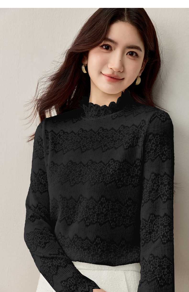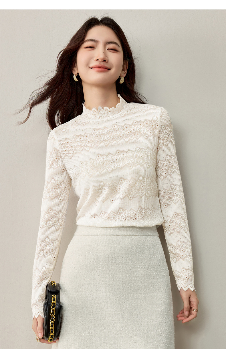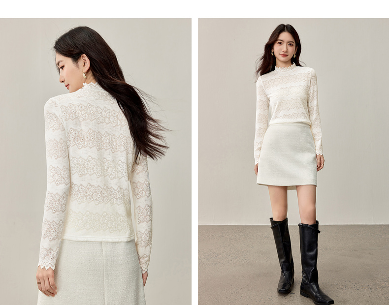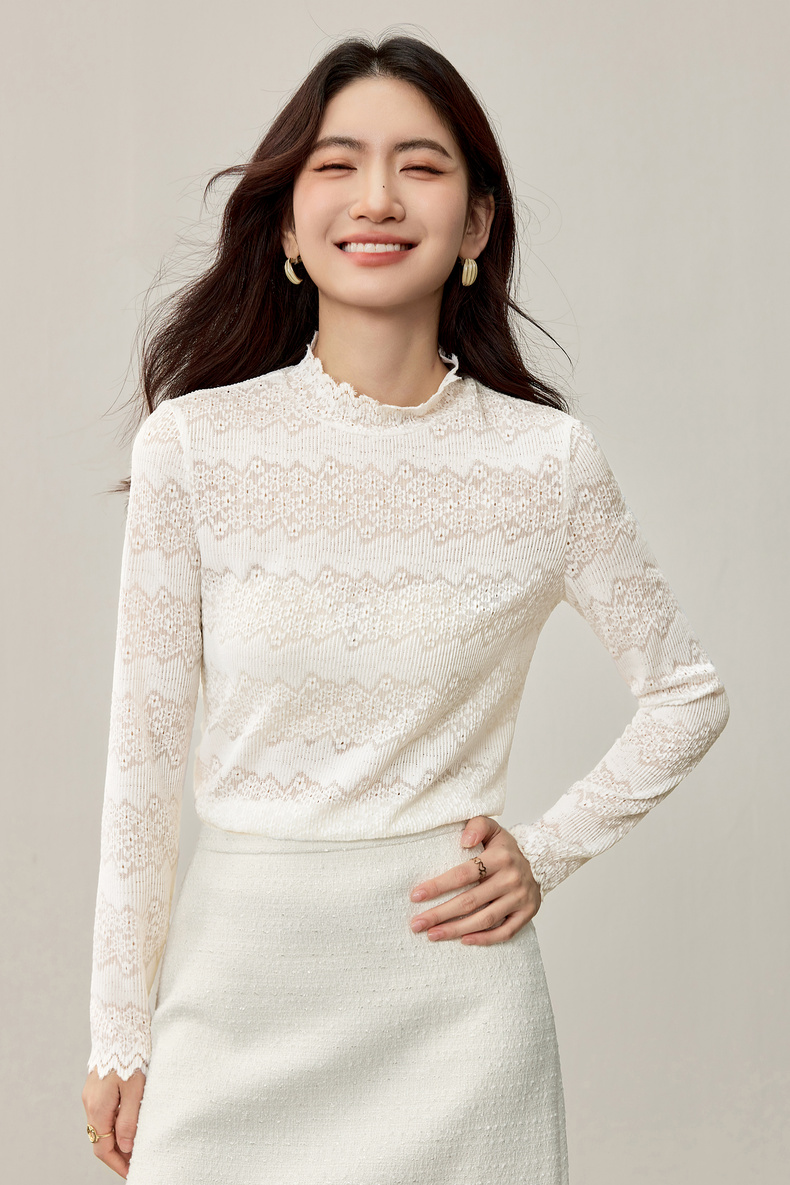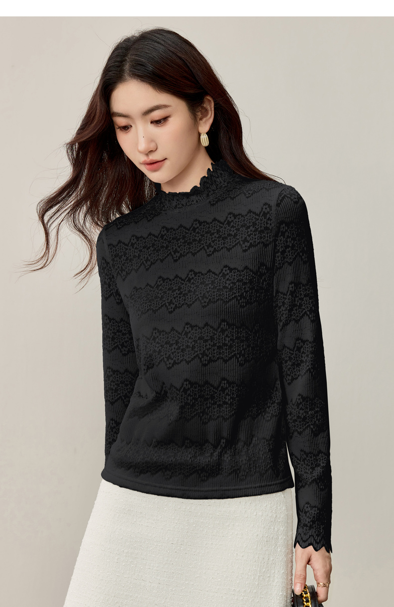 【内购】【外穿内搭】优雅通勤半高领镂空花卉修身弹力长袖蕾丝衫-153SA2770