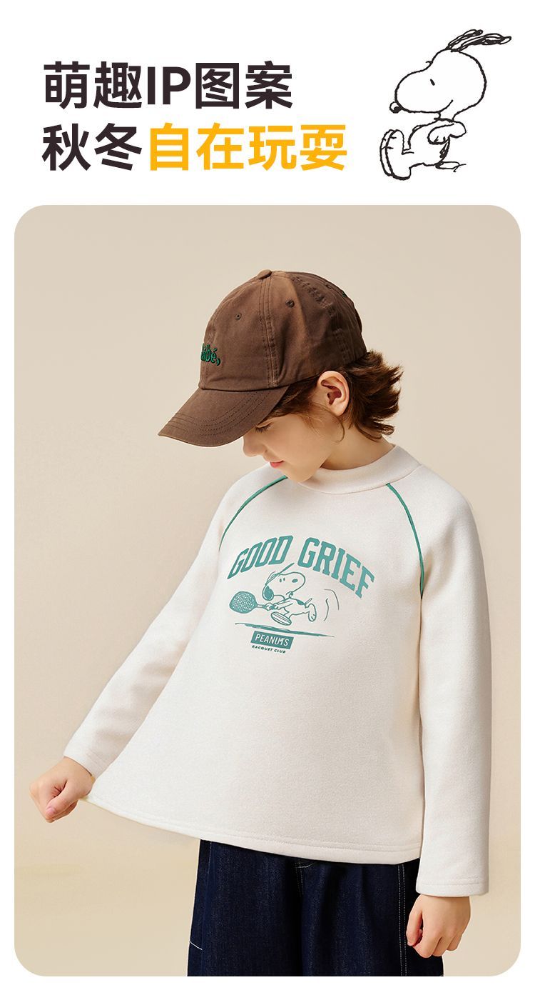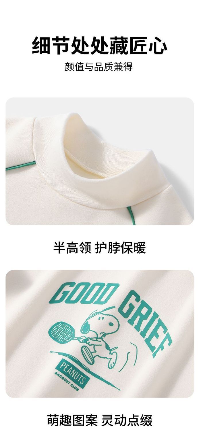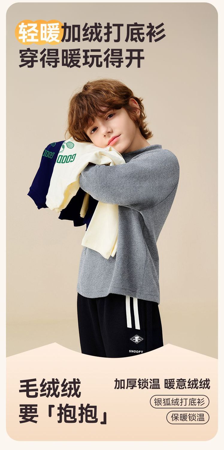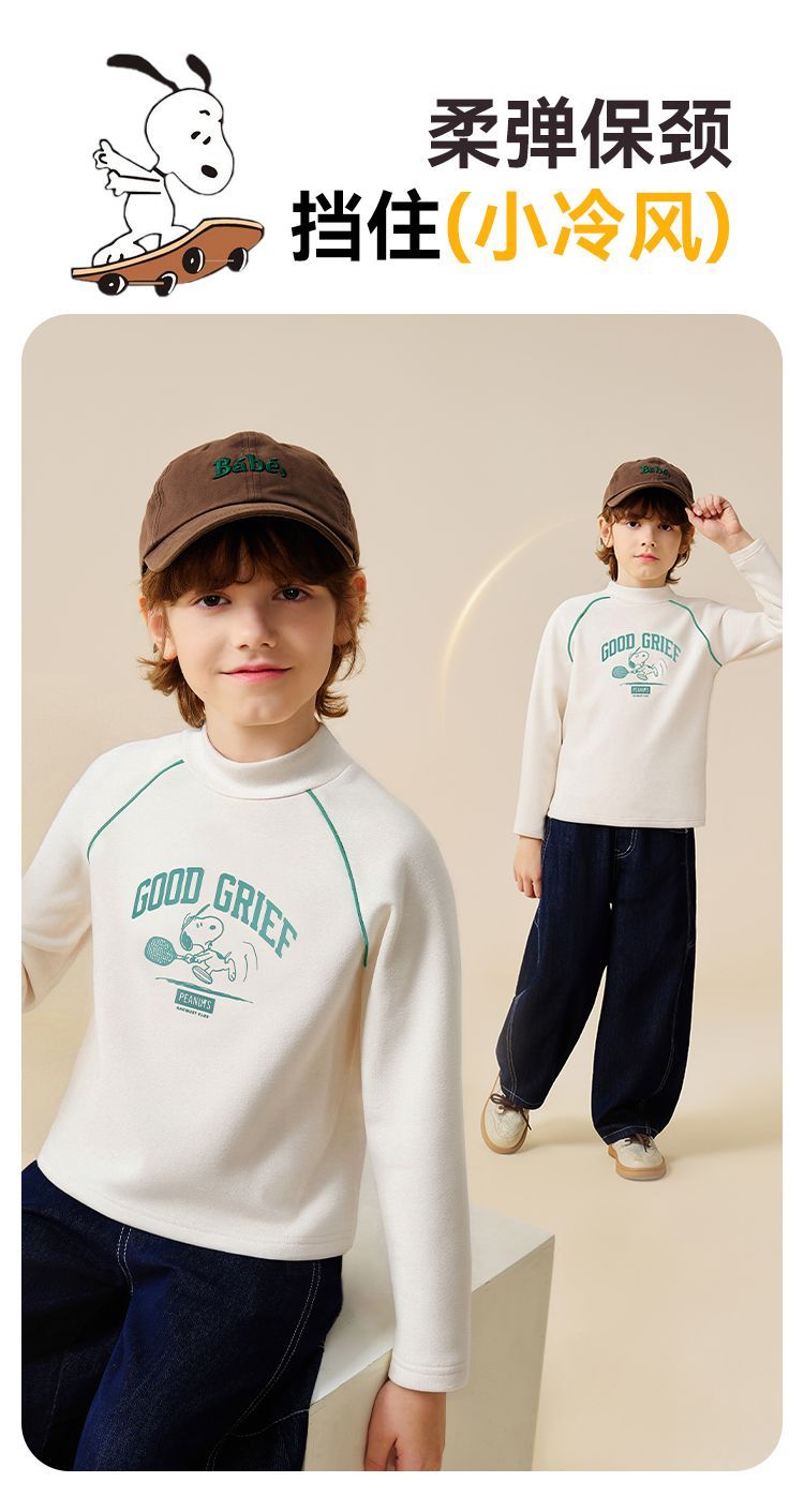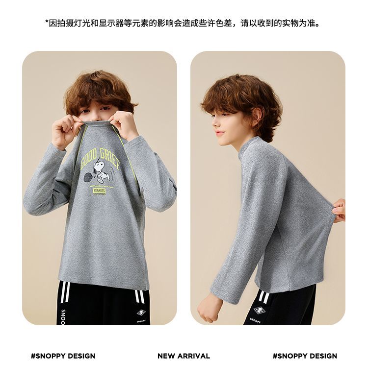 【130-165】【加绒】【史努比】男童半高领内搭保暖上衣