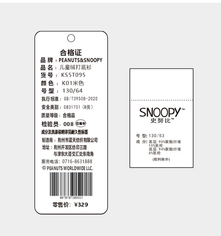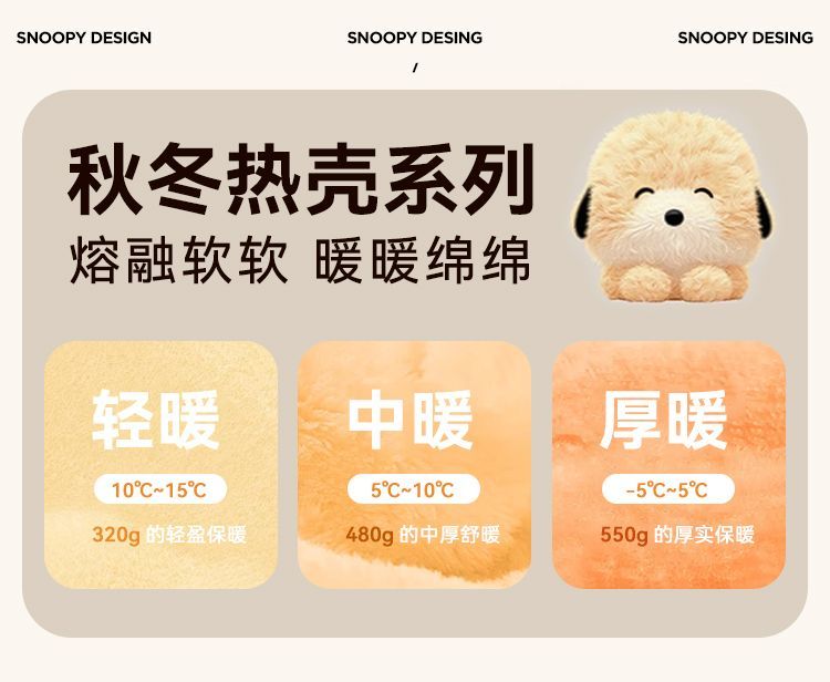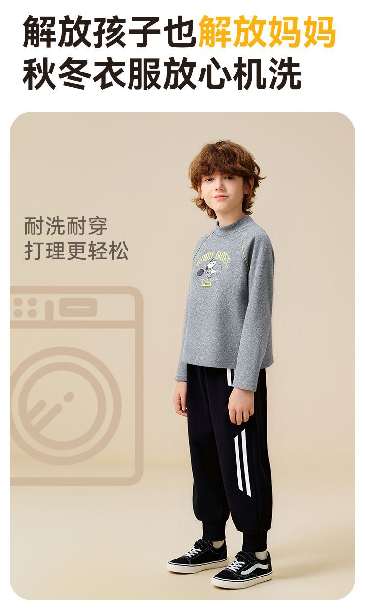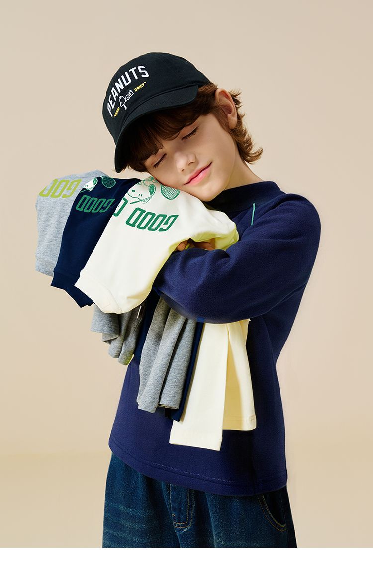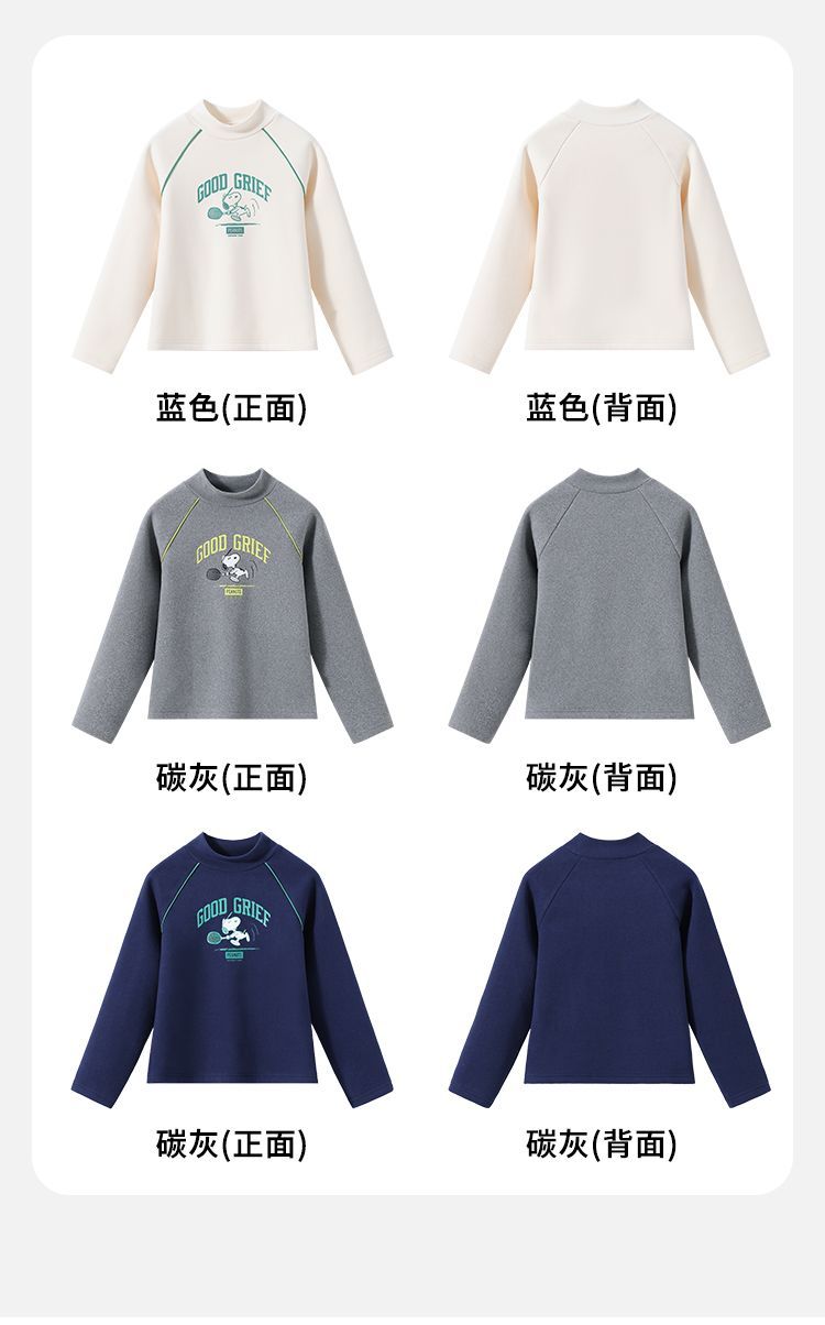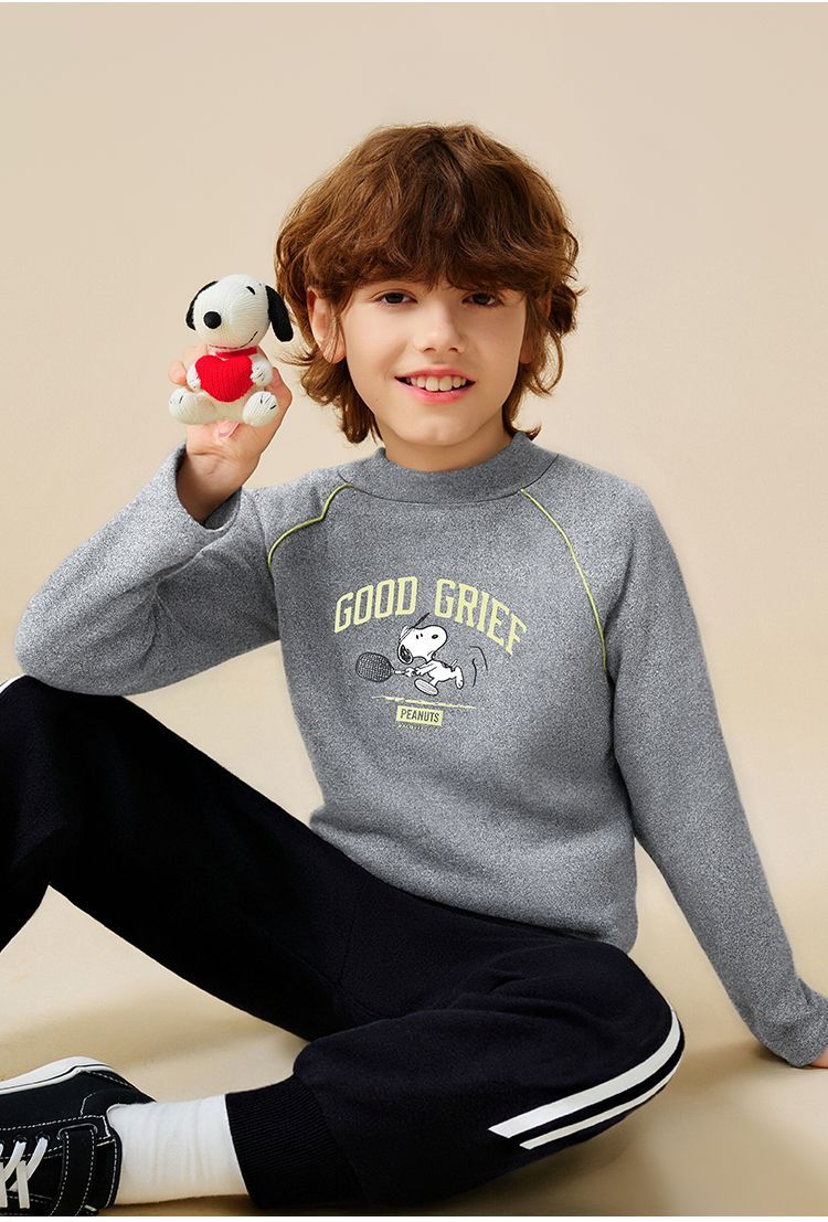 【130-165】【加绒】【史努比】男童半高领内搭保暖上衣