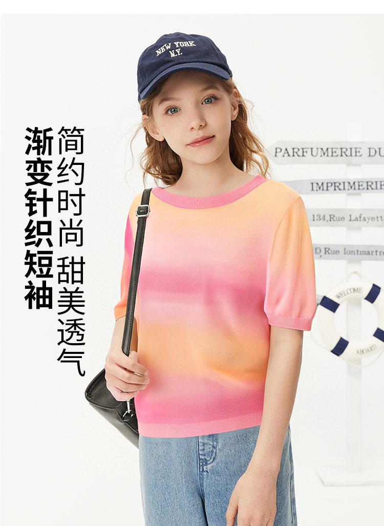 【纳维凯尔】【凉感莱赛尔+绵羊毛】【120-165】Navigare意大利小帆船童装女童短袖针织衫