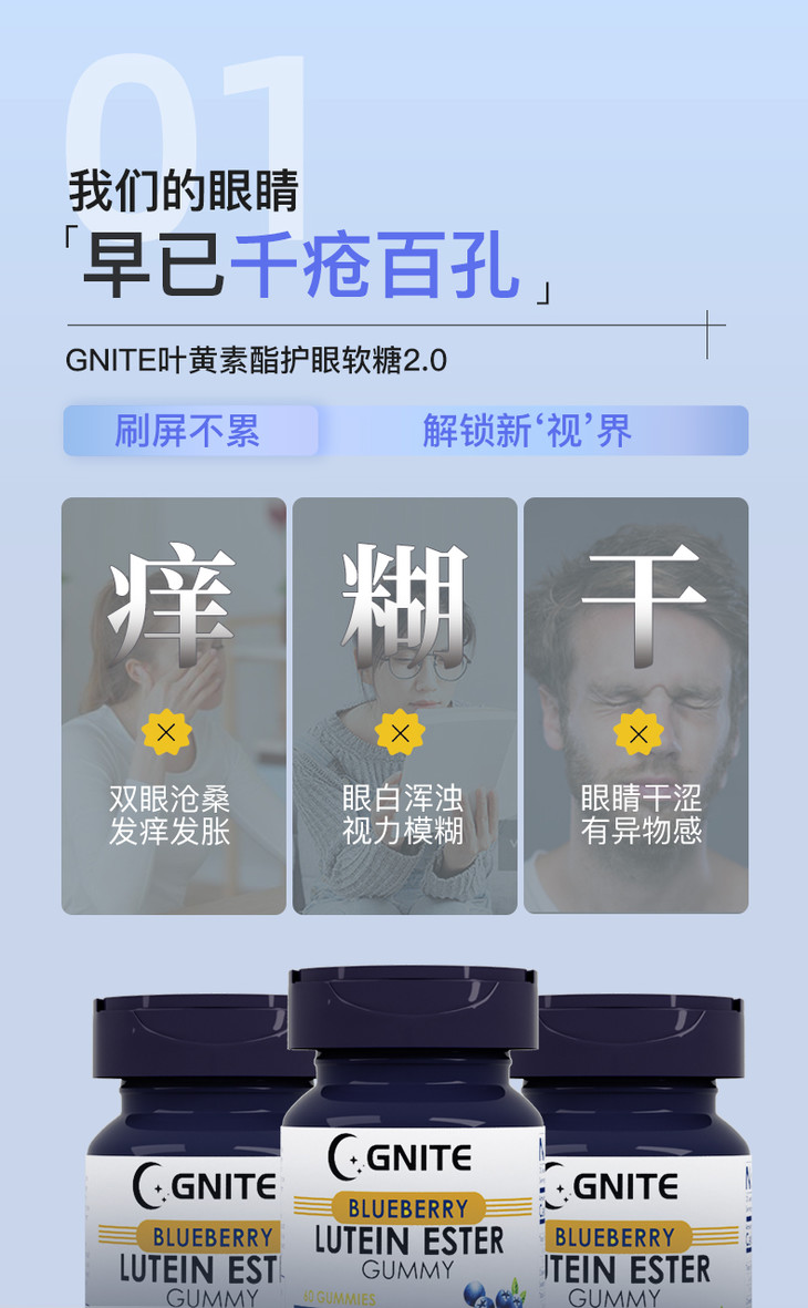 【叼健康】【快递发货】美国GNITE叶黄素酯护眼软糖3代(小光盾)/1瓶(105g)生产日期:24年6月