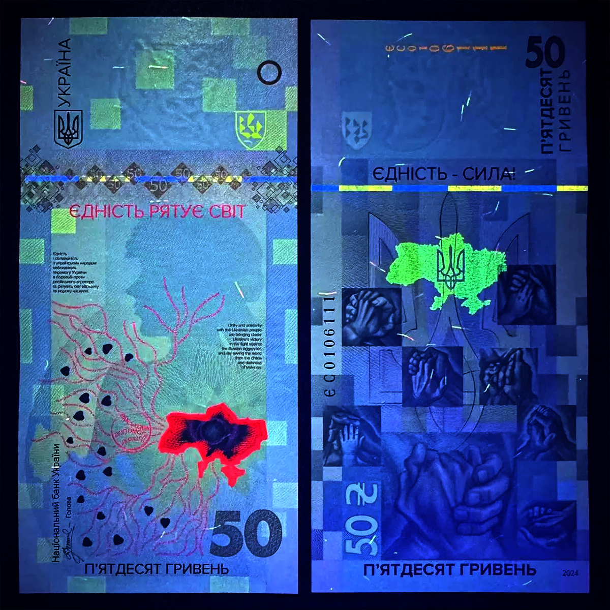 此链接为乌克兰抗俄2周年纪念钞,该纪念钞面值为50格夫里纳。