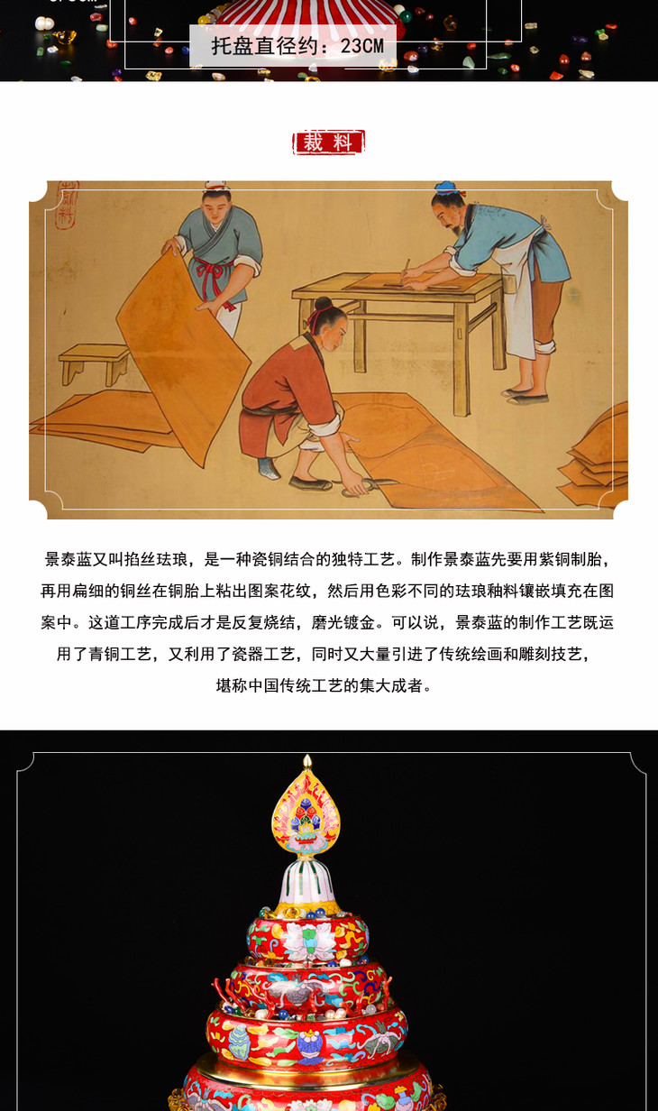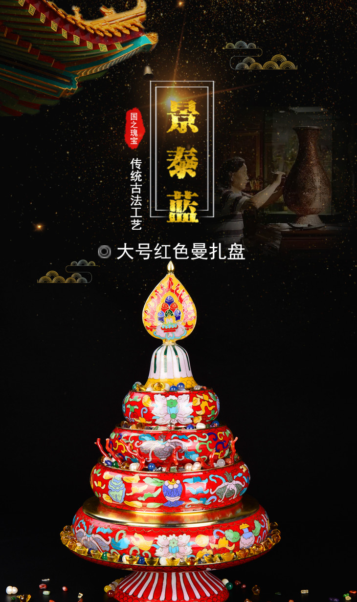 景泰蓝曼茶罗紫铜胎供品法器佛堂摆件大号红色曼扎盘带托盘