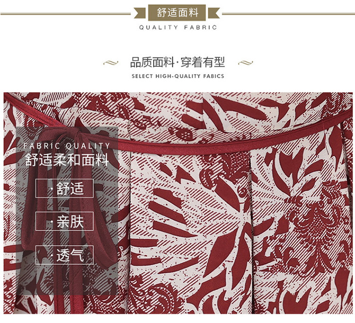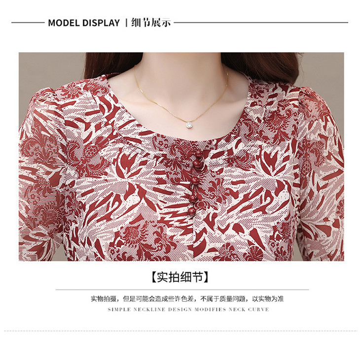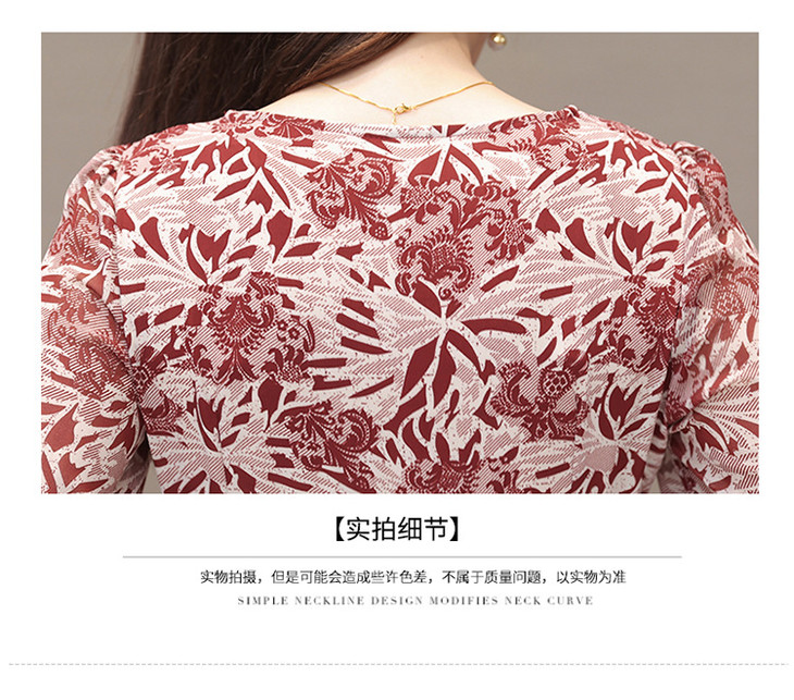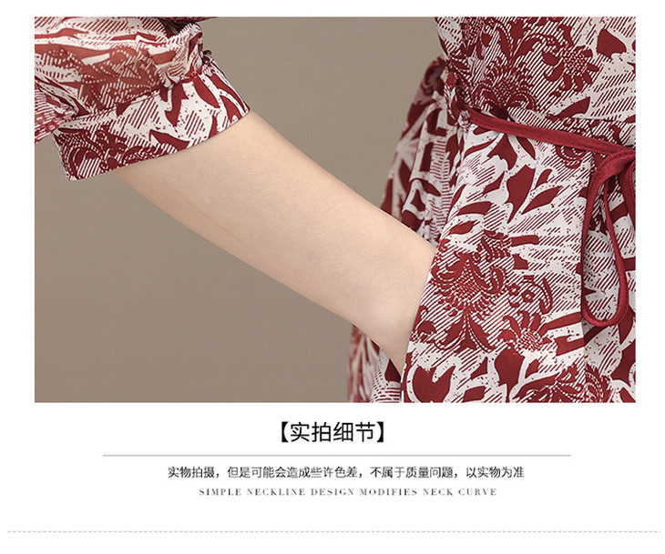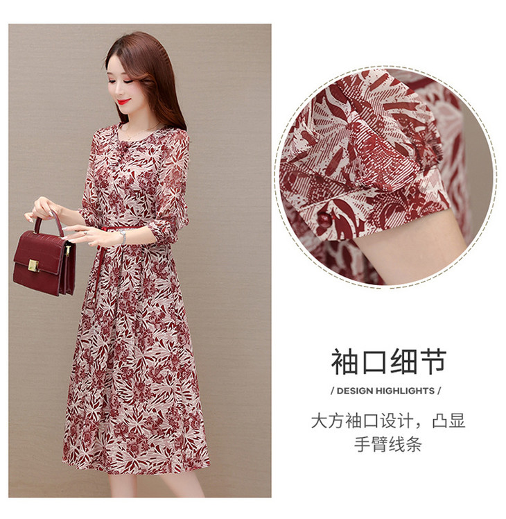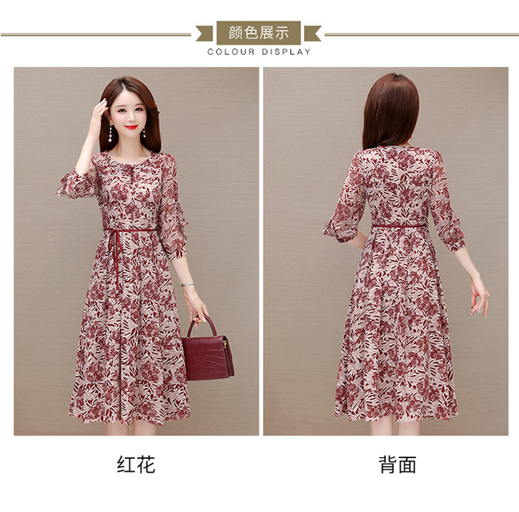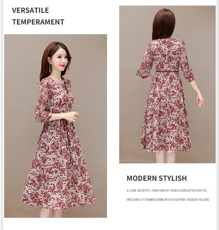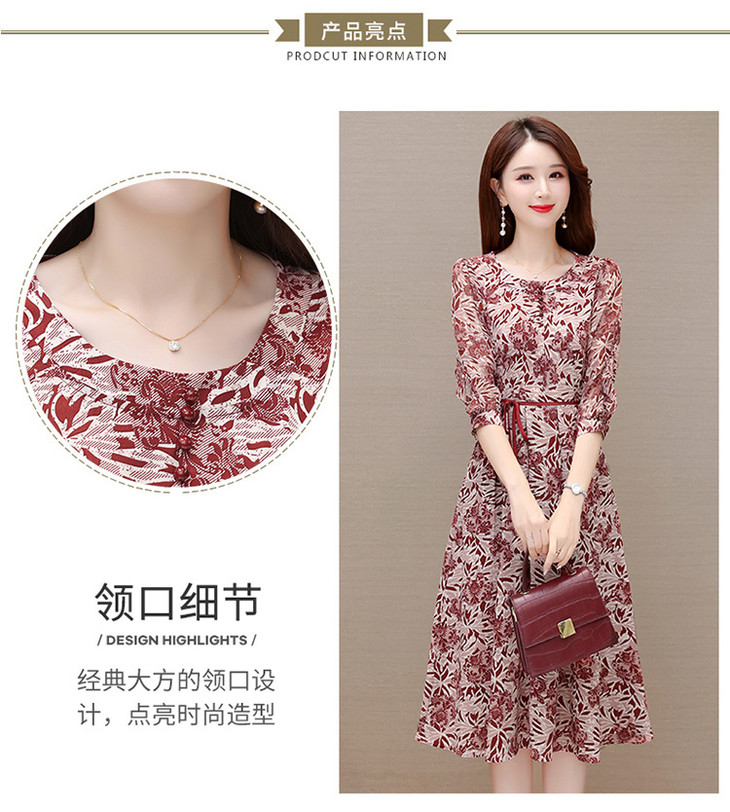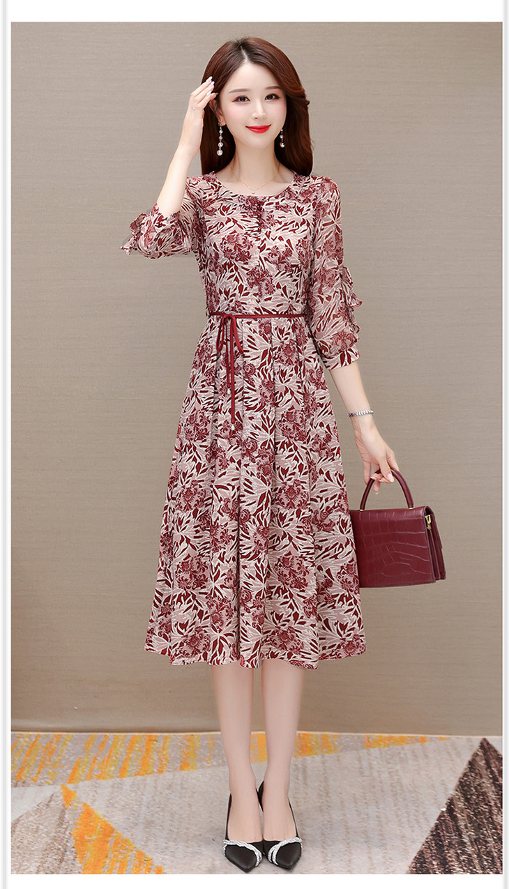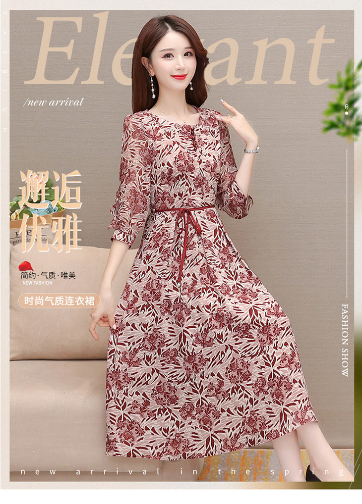2023年夏款中长款印花简约修身时尚雪纺裙圆领七分袖气质连衣裙QYM-CR-YZY2318-L