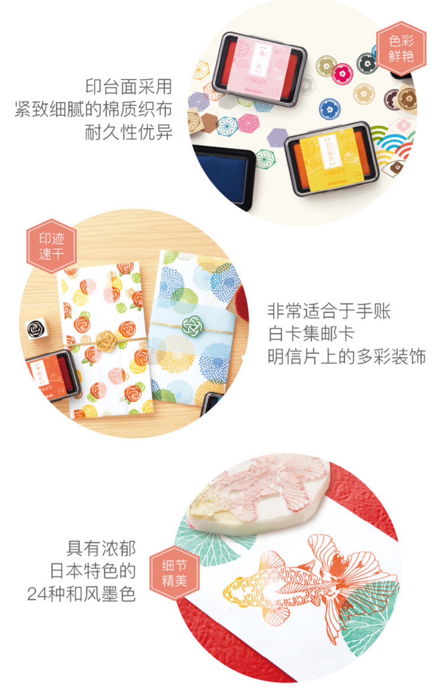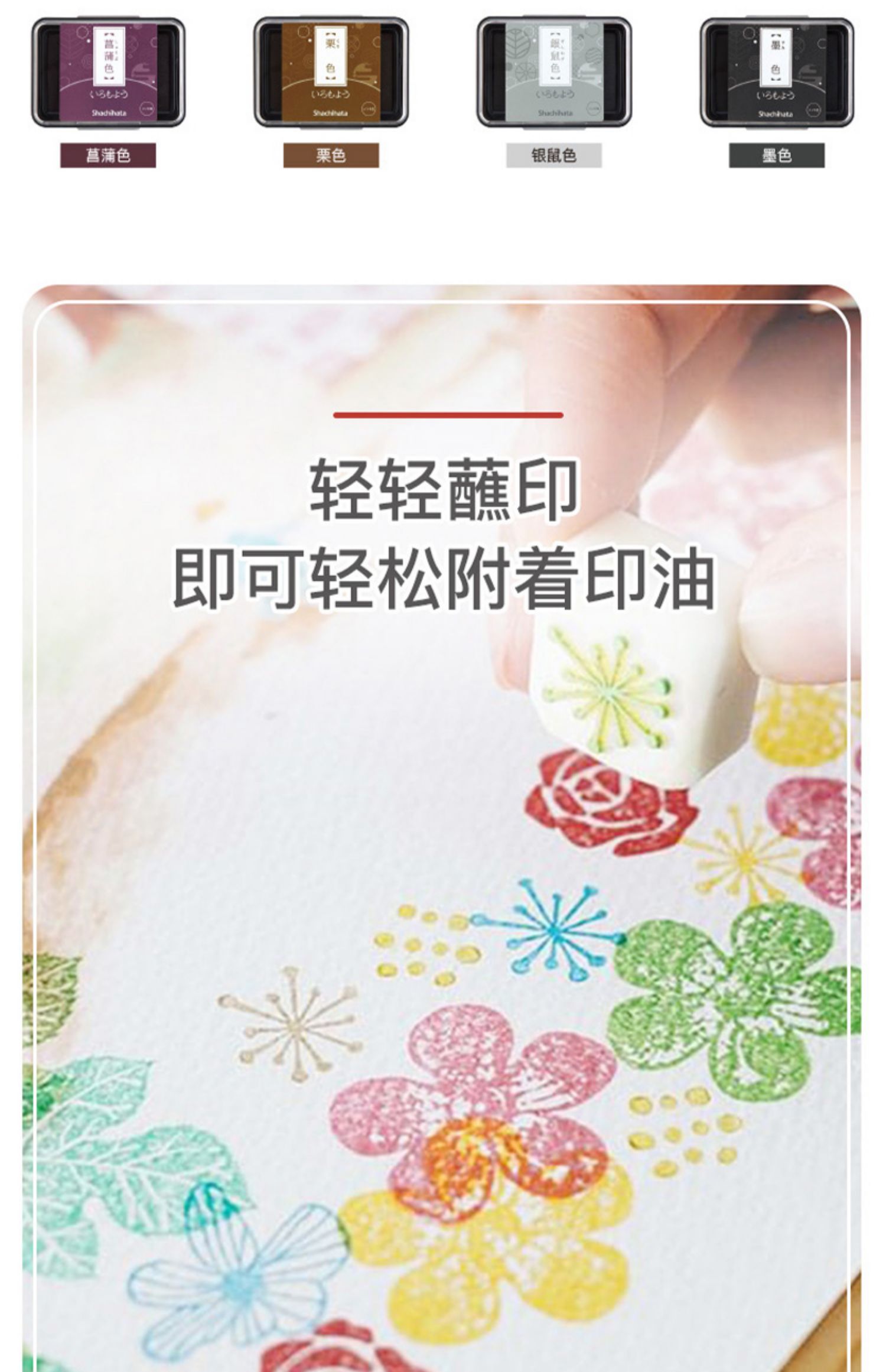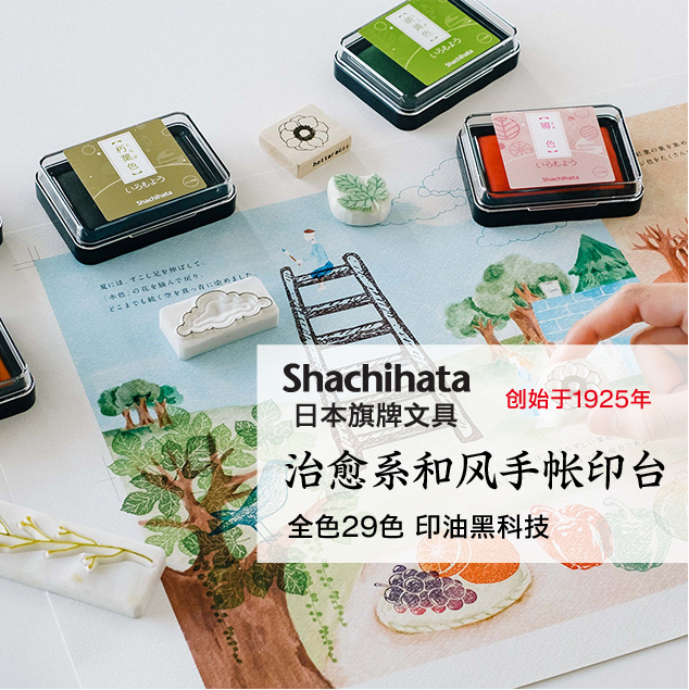 日本Shachihata旗牌油性颜料色模样和风手账印台全24色女生治愈系印油印泥盒学生DIY手工日记本彩色印台