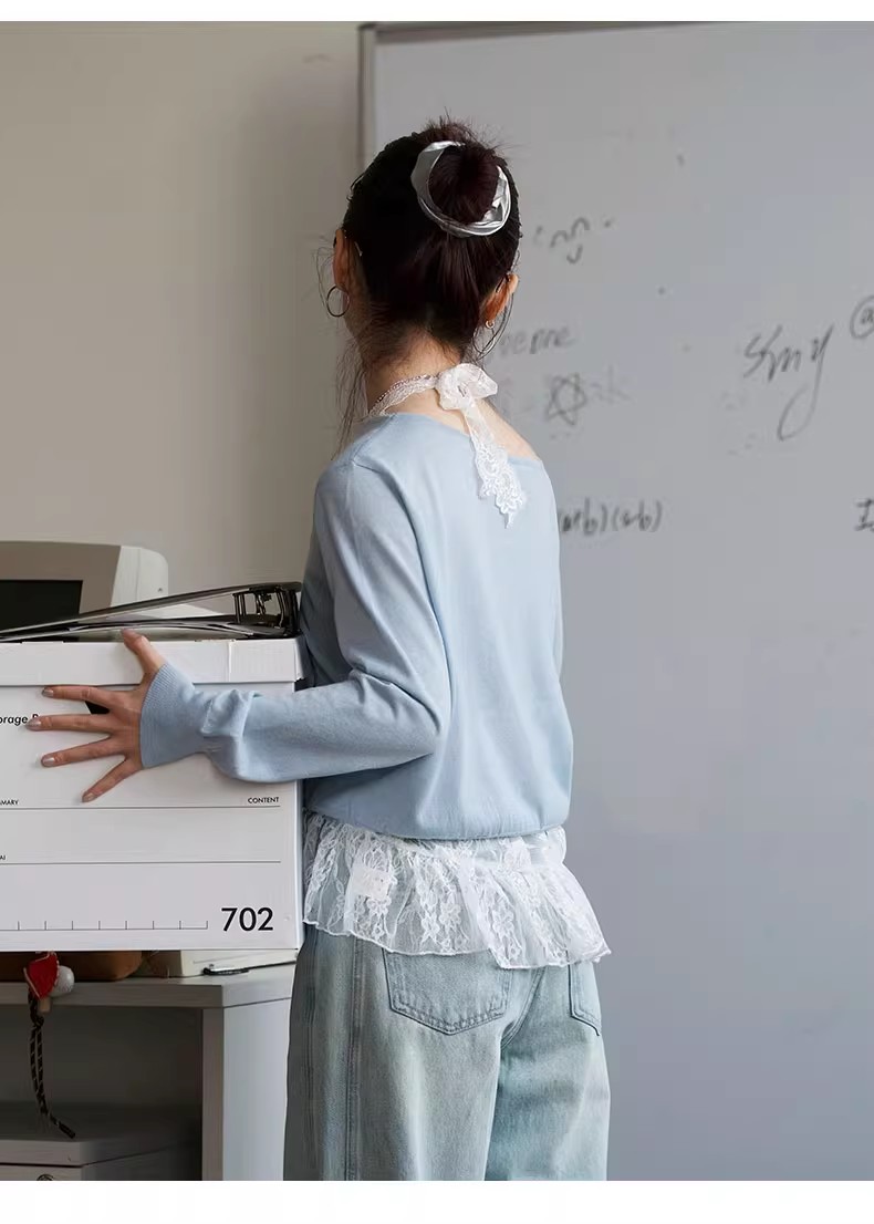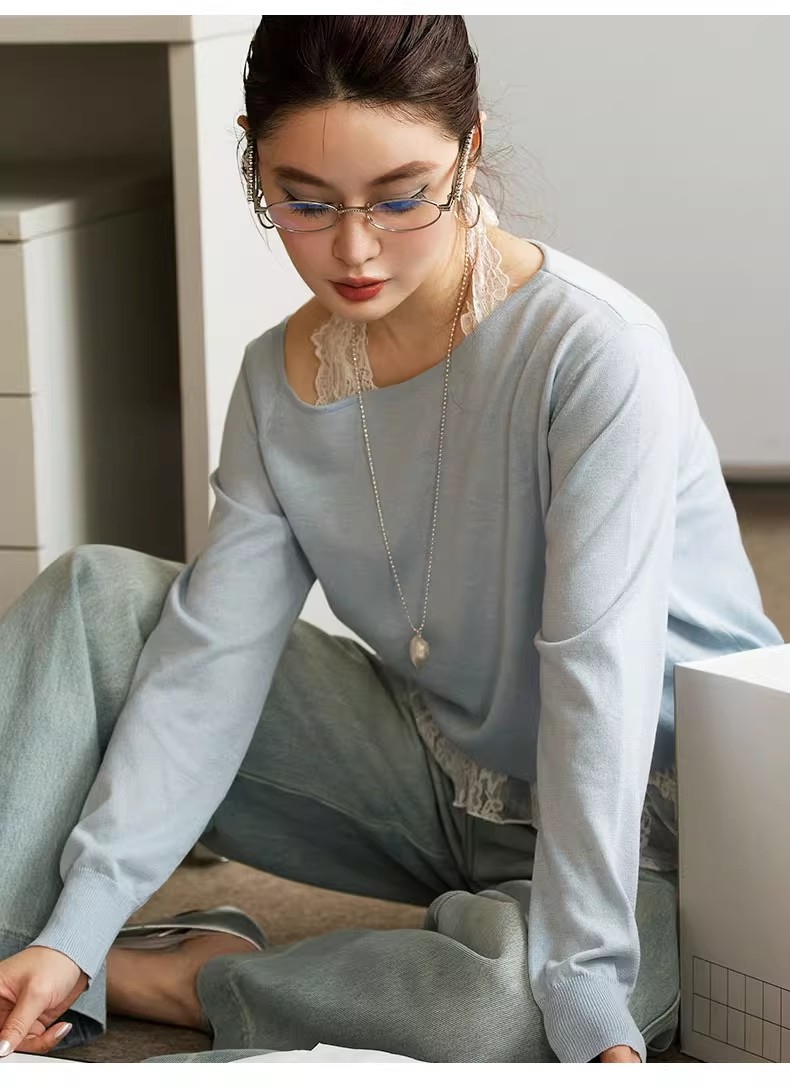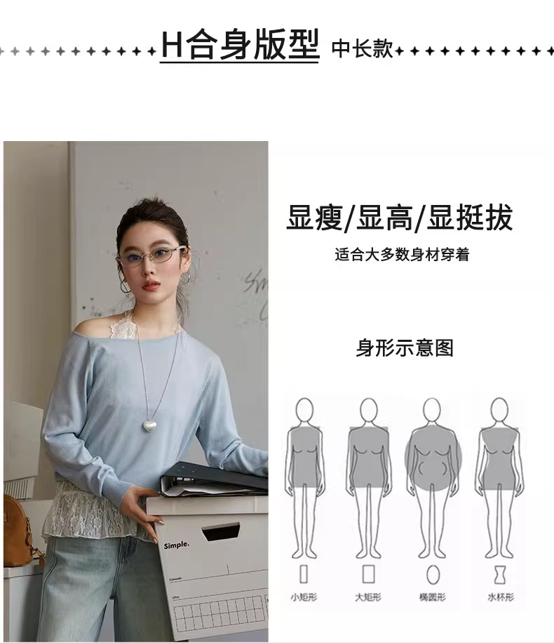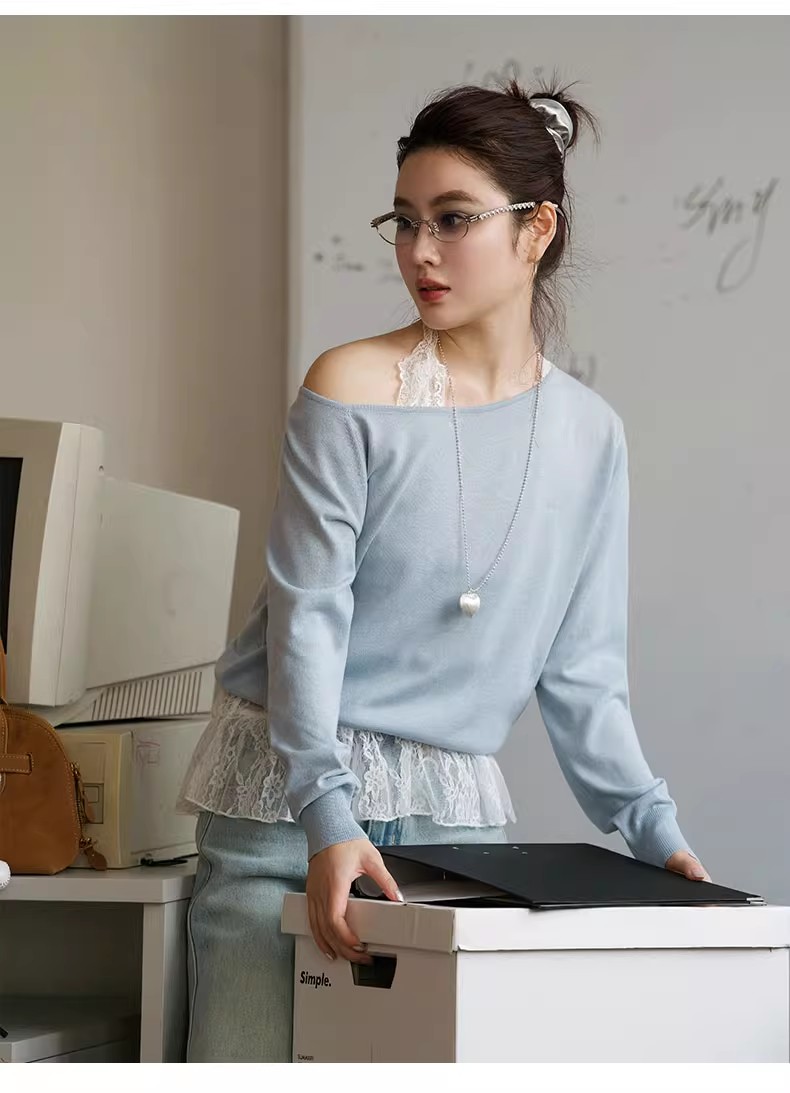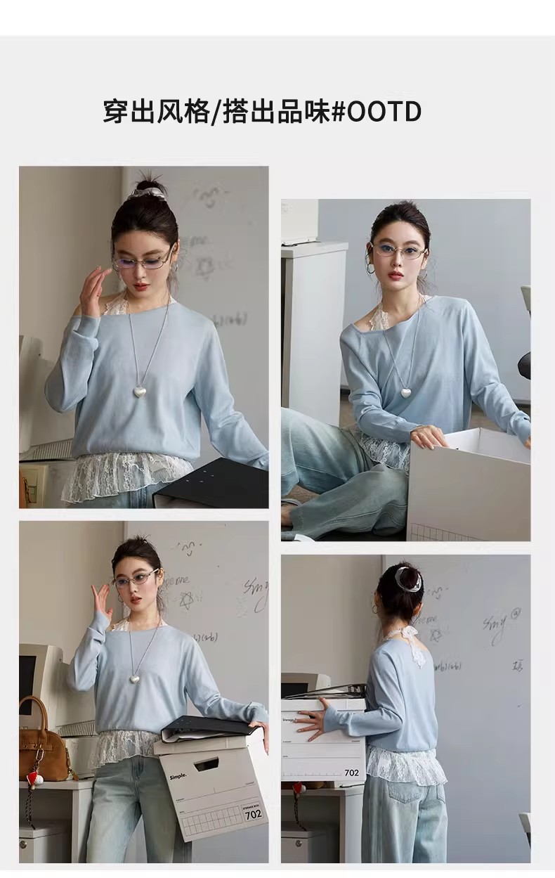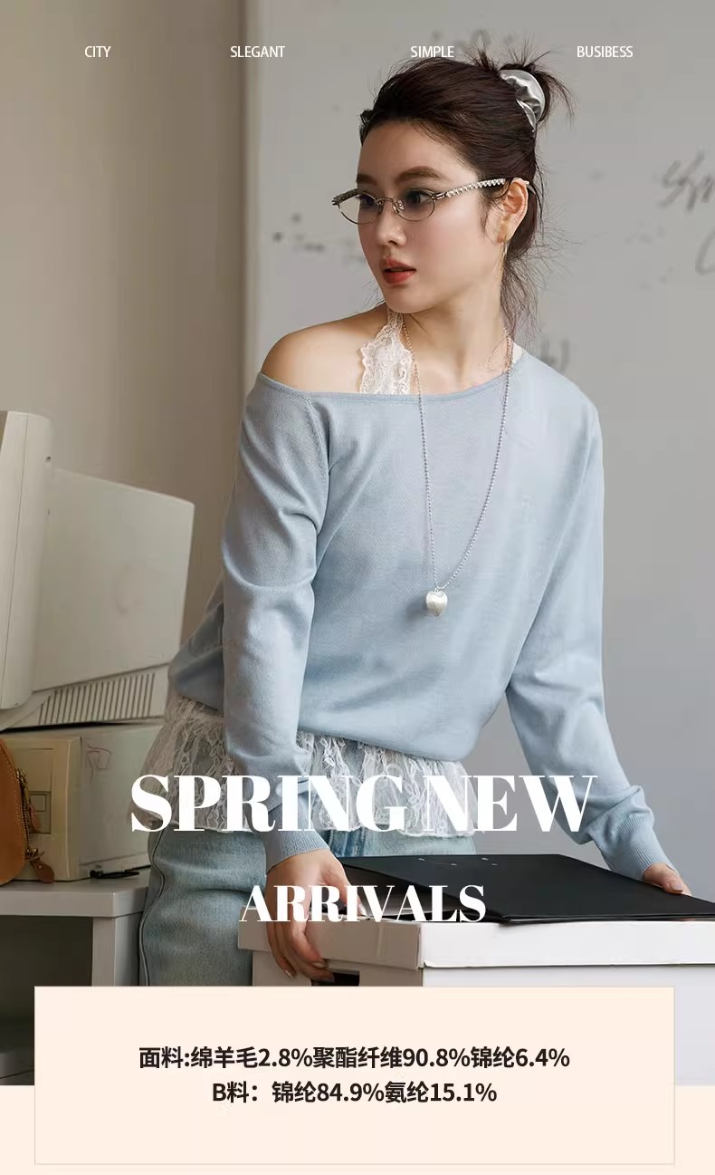 【门店同款】ENJOY春季“盐貌似糖”蕾丝打底斜肩针织 161943940