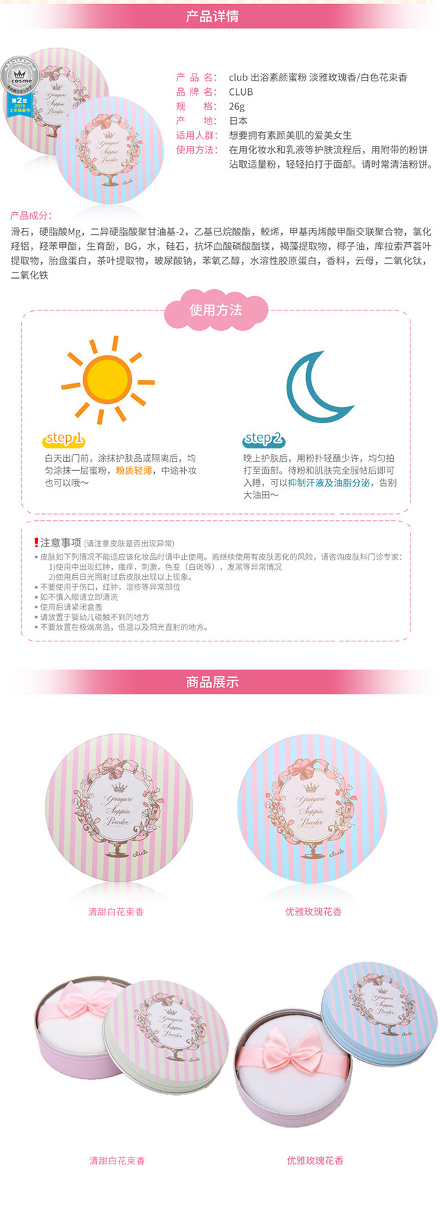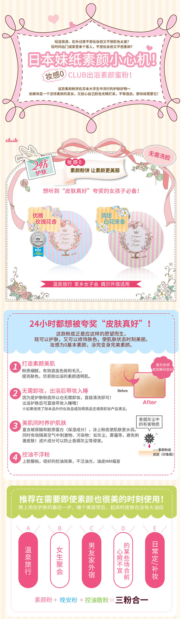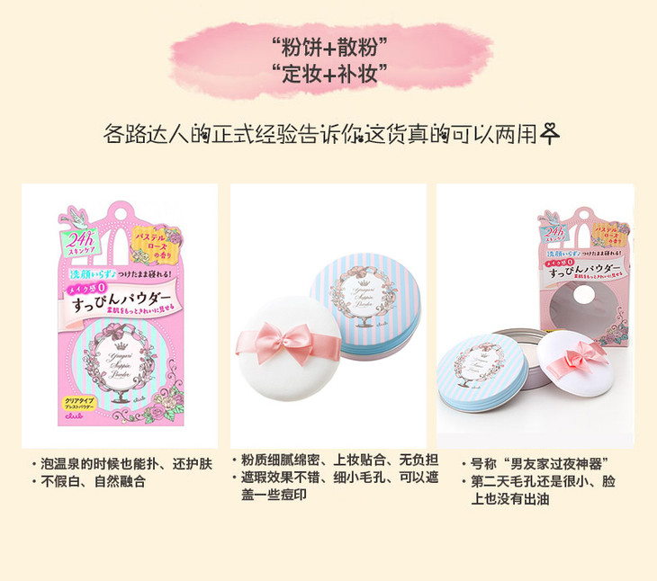 【香港直邮】心机晚安粉,男神家过夜神器!日本CLUB出浴素颜蜜粉26g/盒无需卸妆