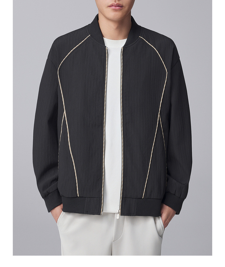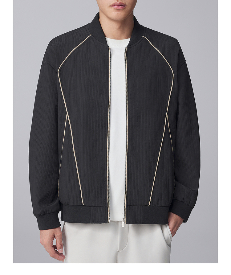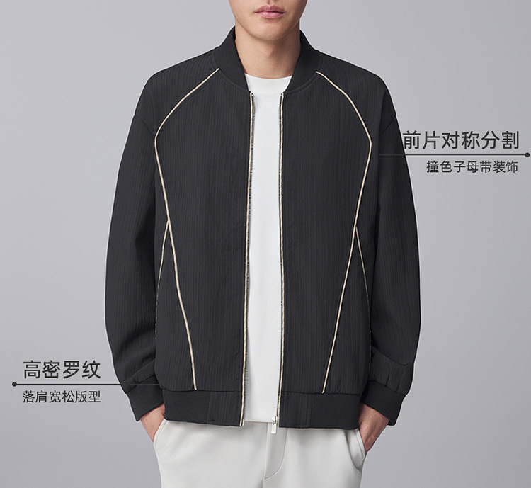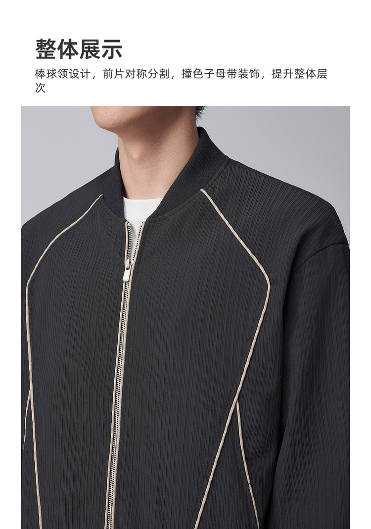墨麦客男装竖纹肌理棒球领外套男2024秋季新款休闲男士夹克81233