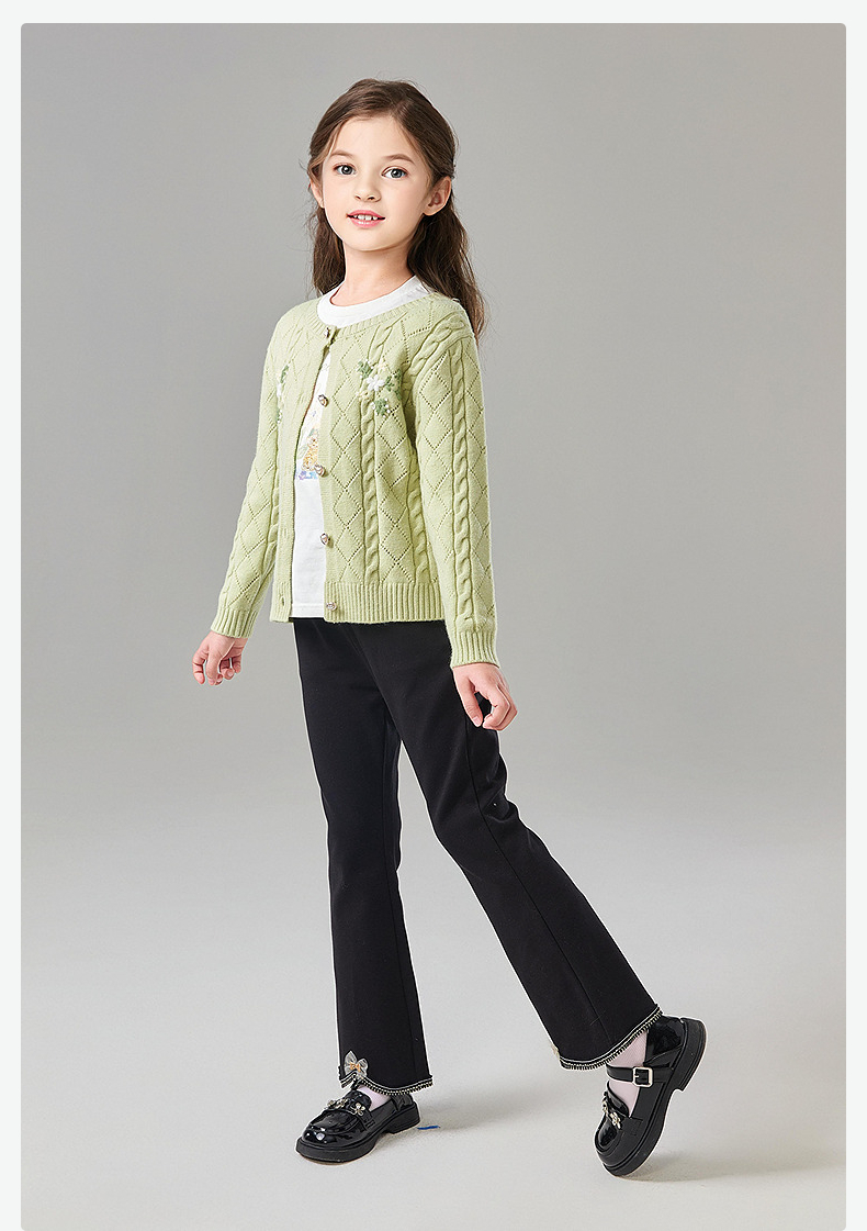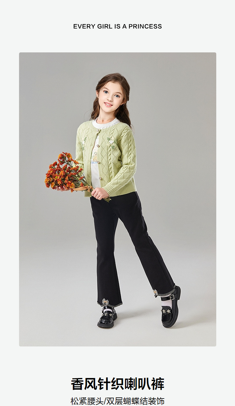 笛莎Deesha 童装女童裤子2025春新款香风针织喇叭裤