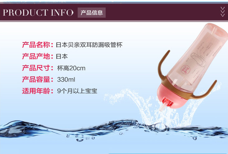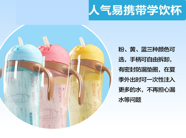 【一般贸易】日本贝亲Pigeon 宝宝饮杯吸管杯带柄330ML (黄色)