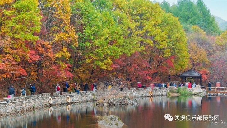 早餐后驱车前往【大石湖】,踏着湍急的流水,踏过一段乱石滩,才看到一股宽大的水流沿着面壁斜着飞泻下来。不知是水带风还是风带水,水雾迷漫,纷纷扬扬,被阳光一照,飘出段彩虹,看得出人们心神欲醉。随后前往【老边沟】,金秋十月,这里更是以那漫山遍野的红叶而成为摄影爱好者的圣地,艺术家的天堂,来到这里,绝对是不虚此行,离开这里,依然是梦绕魂牵。