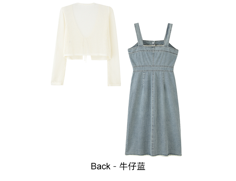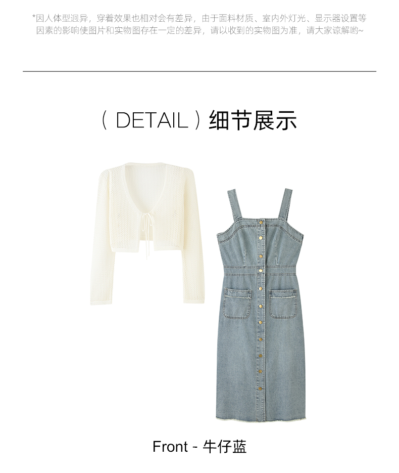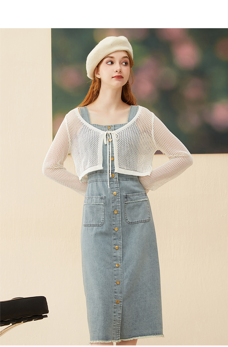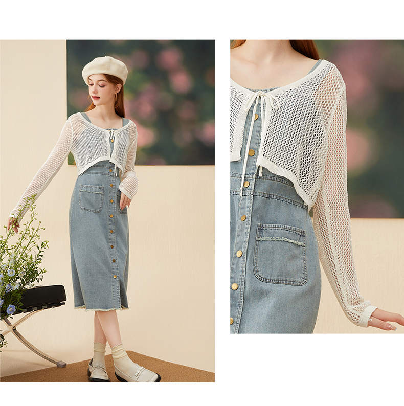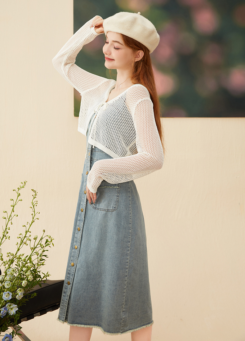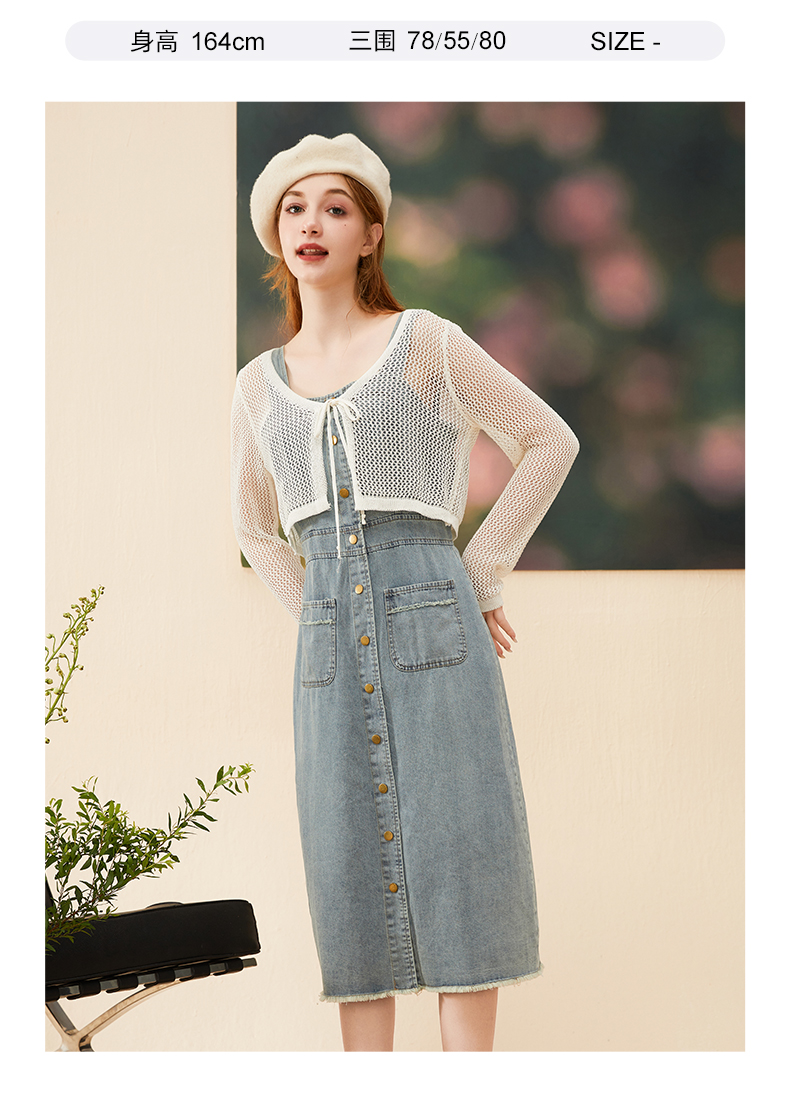 mc2牛仔吊带连衣裙长裙秋季新款+长袖针织开衫复古牛仔裙套装气质