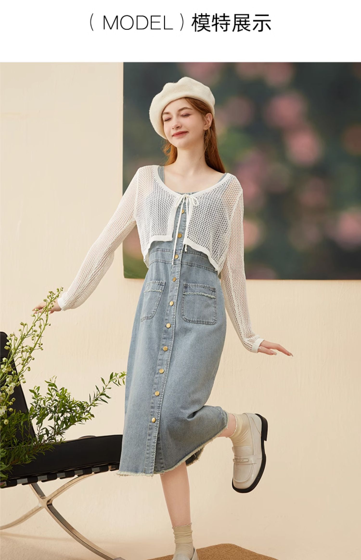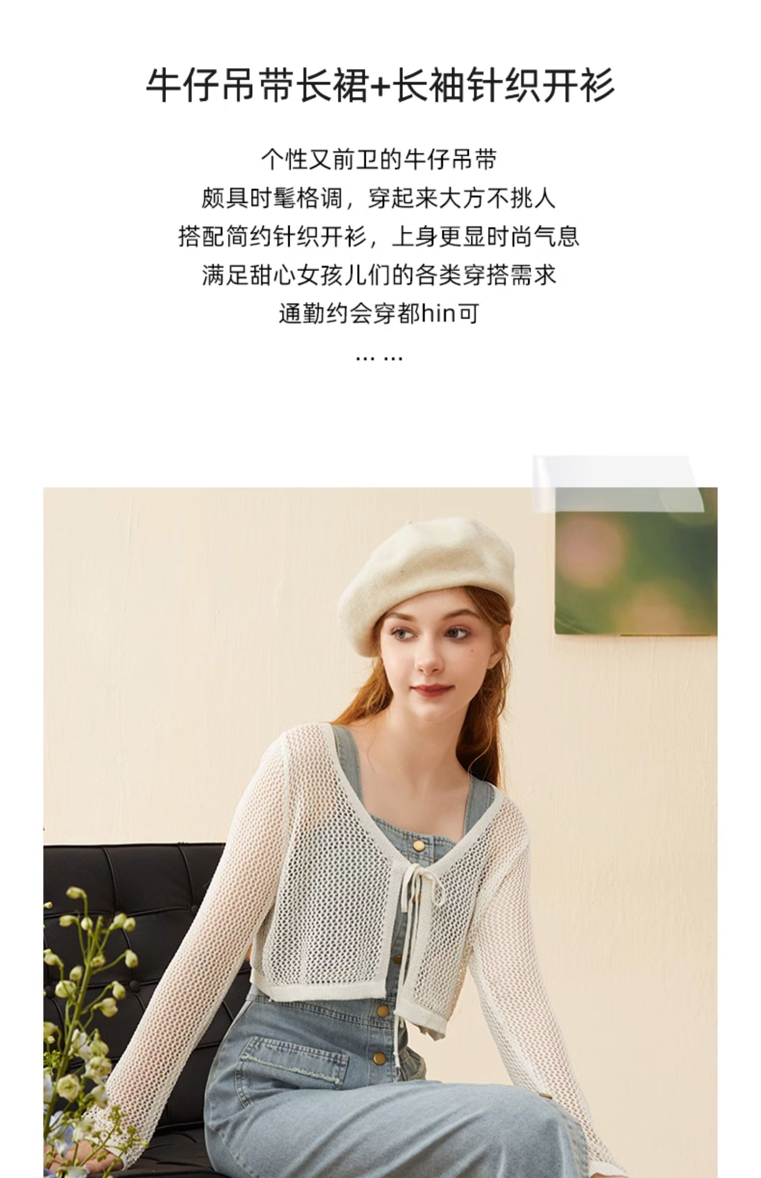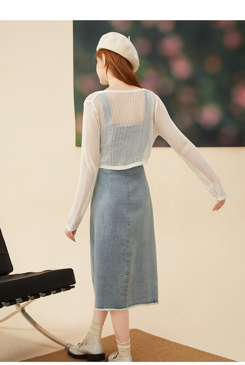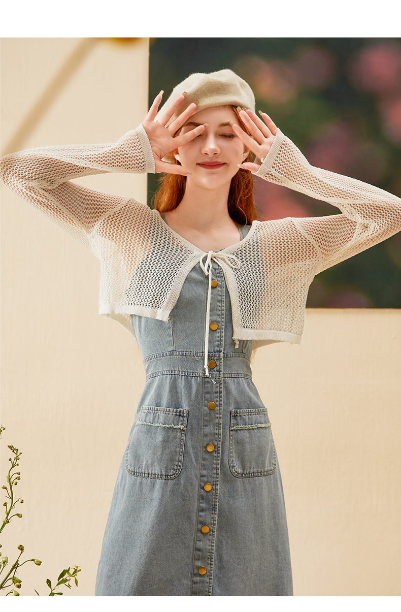 mc2牛仔吊带连衣裙长裙秋季新款+长袖针织开衫复古牛仔裙套装气质