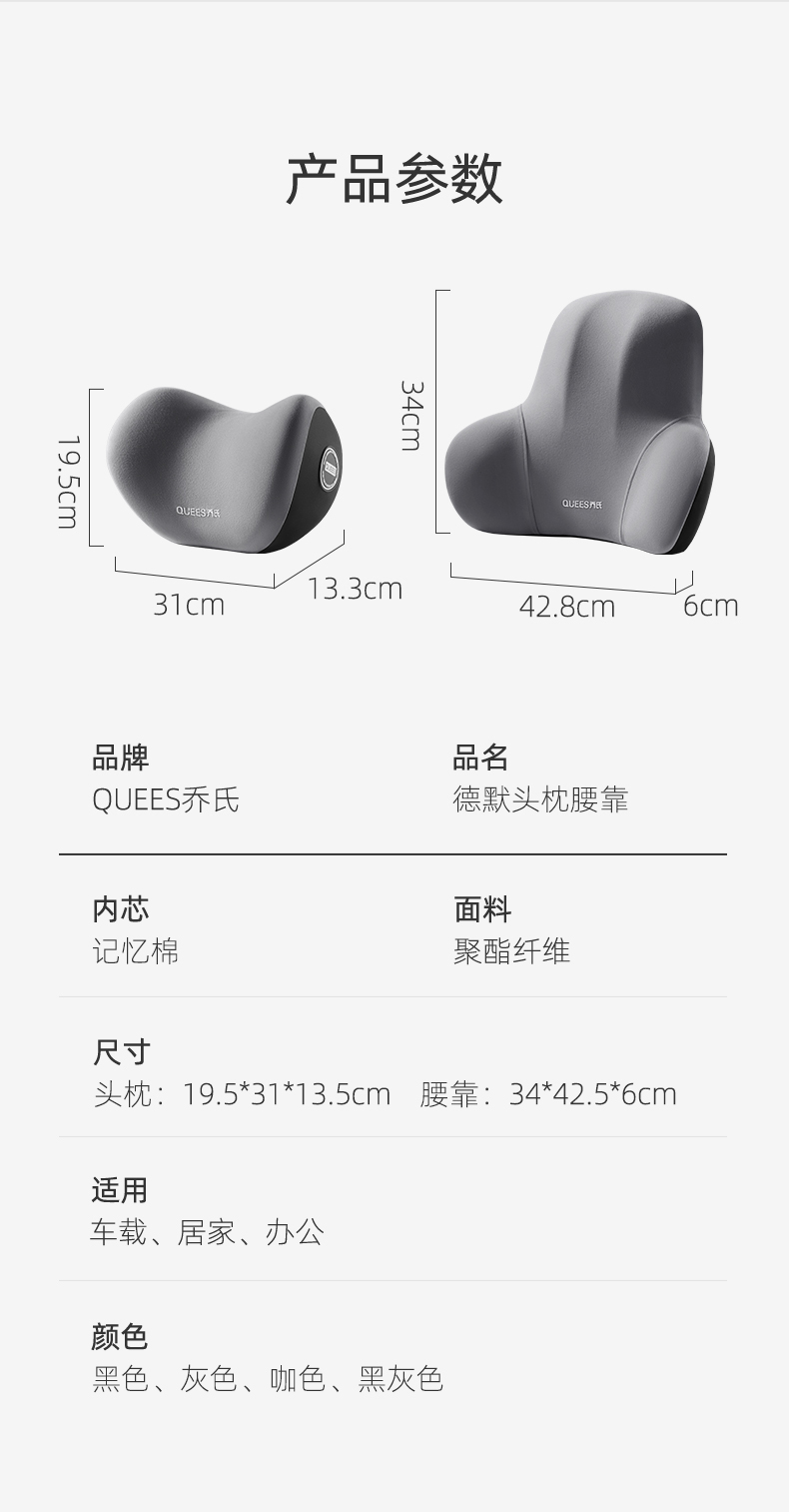 乔氏德默系列汽车头枕车用靠枕颈枕靠垫腰靠车内座椅枕头宝马奔驰迈巴赫护颈枕