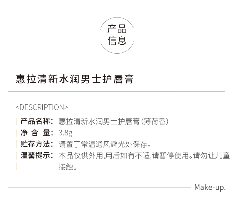 惠拉清新水润男士护唇膏(薄荷香)3.8g(250564)
