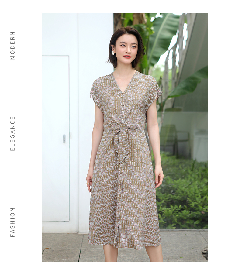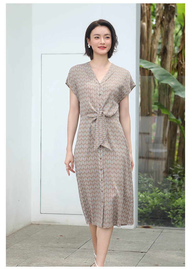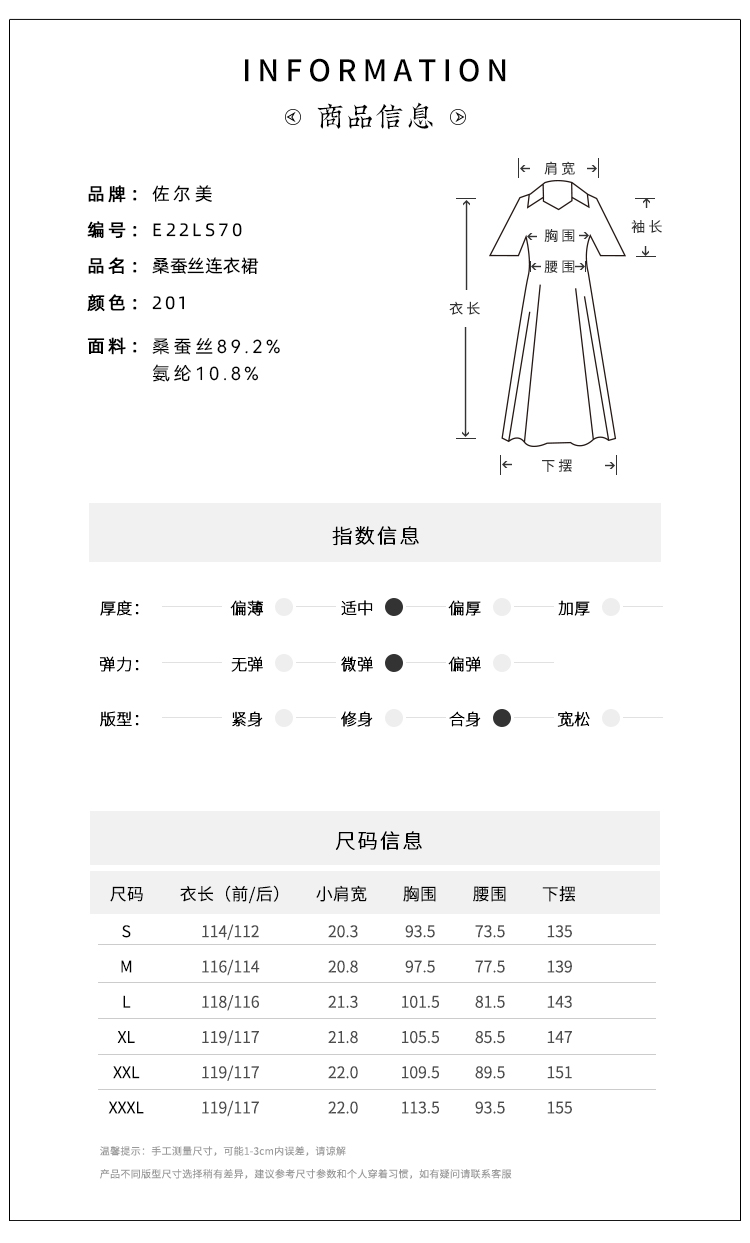 佐尔美夏季新款 气质无袖V领桑蚕丝中长连衣裙女E22LS70