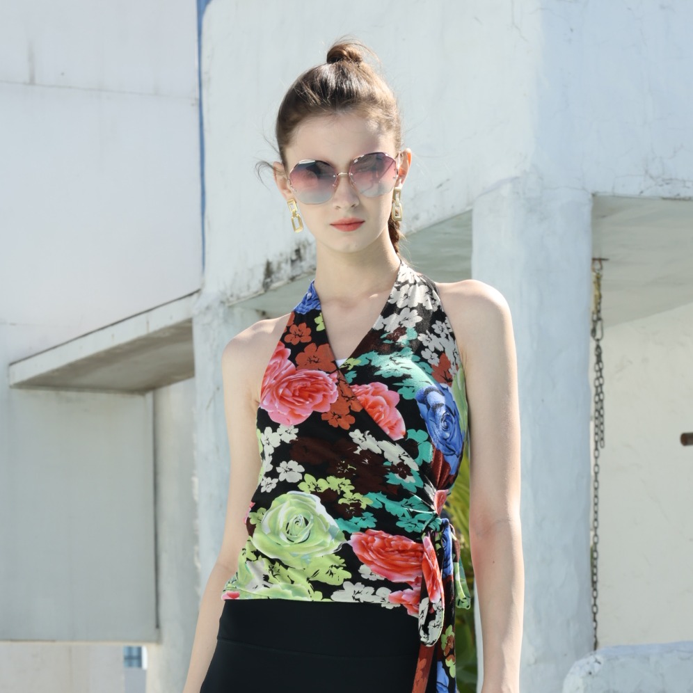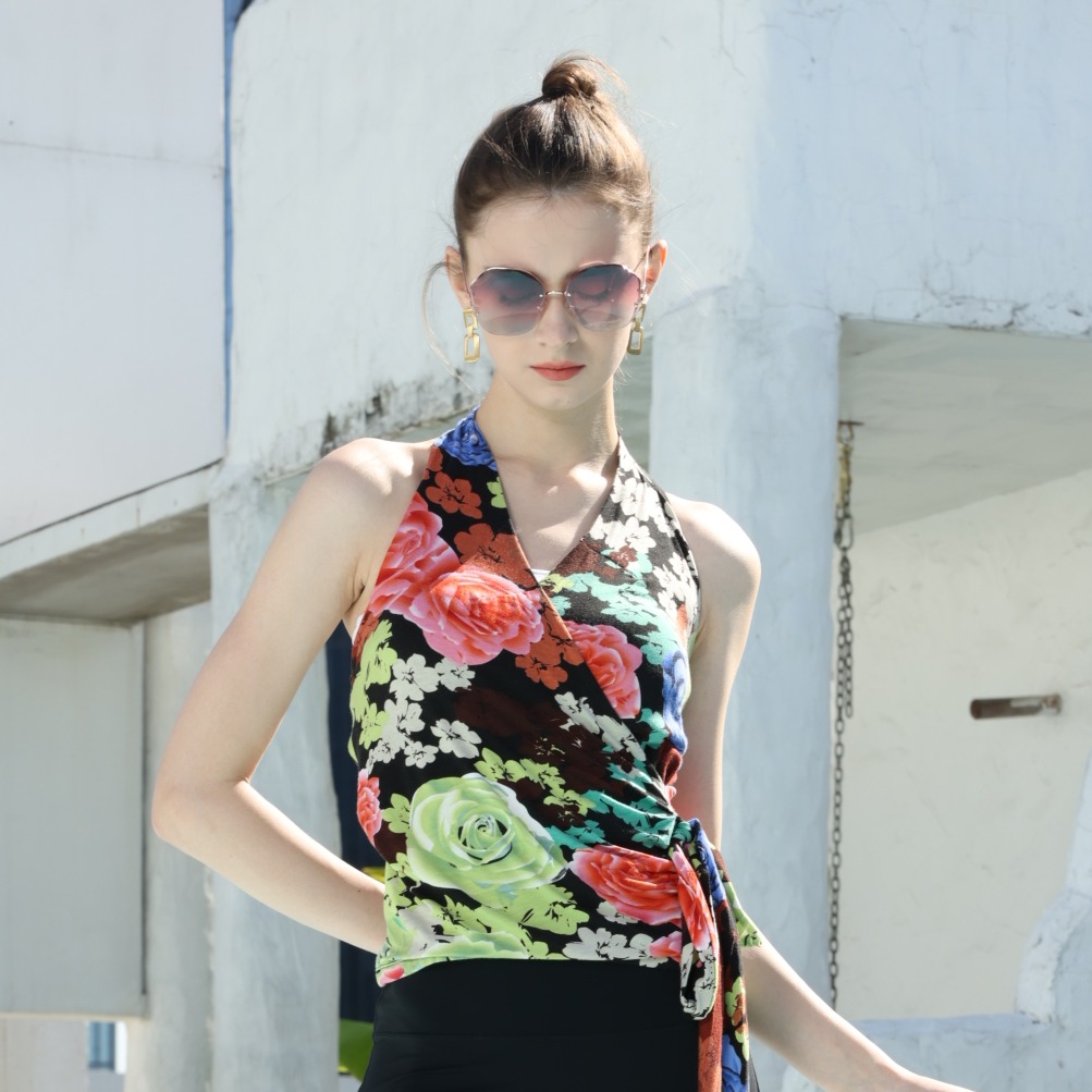 2024春夏新款花色挂脖S羽烟瑜伽背心