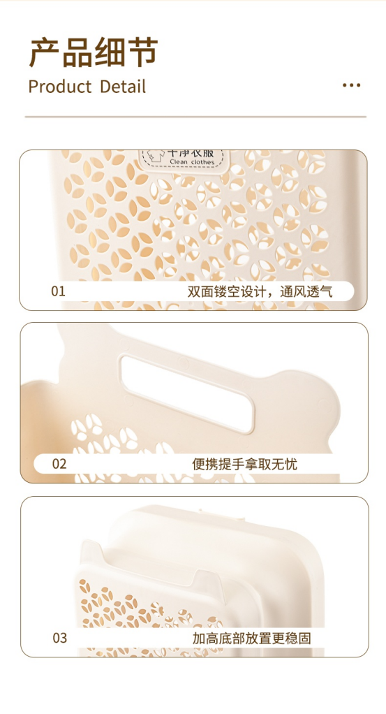 我们平时不仅可以放一些脏衣服,还可以将洗好的衣物放进去,直接提着去晾晒,更方便实用👍 ✅而且它的缕空设计能够让水分尽快渗出,衣服不会潮湿发霉 ✅平时我们不用的时候还可以放在客厅当储物箱使用的哦~~