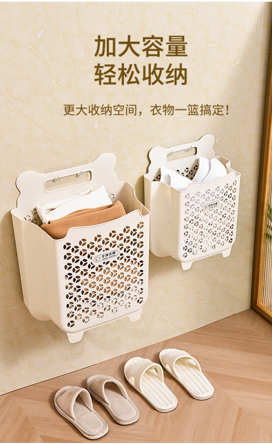 😎一周脏衣轻松收纳 ‼️巨能装 👍从此告别凌乱~ 【小空间大收纳】大容量挂壁式免打孔折叠脏衣篮,✨实用方便!也可以用来收纳零食玩具整齐又美观🐮