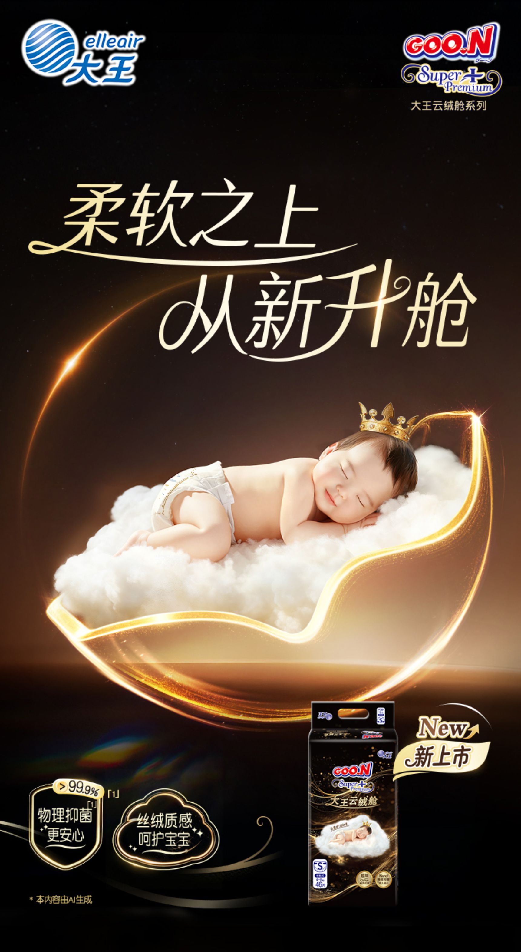 大王【新品上市】云绒舱系列环贴式纸尿裤拉拉裤装干爽透气尿不湿