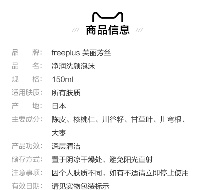 【YZ】Freeplus/芙丽芳丝洁面泡沫氨基酸150ml深层清洁洗面奶温和洁面乳150nl