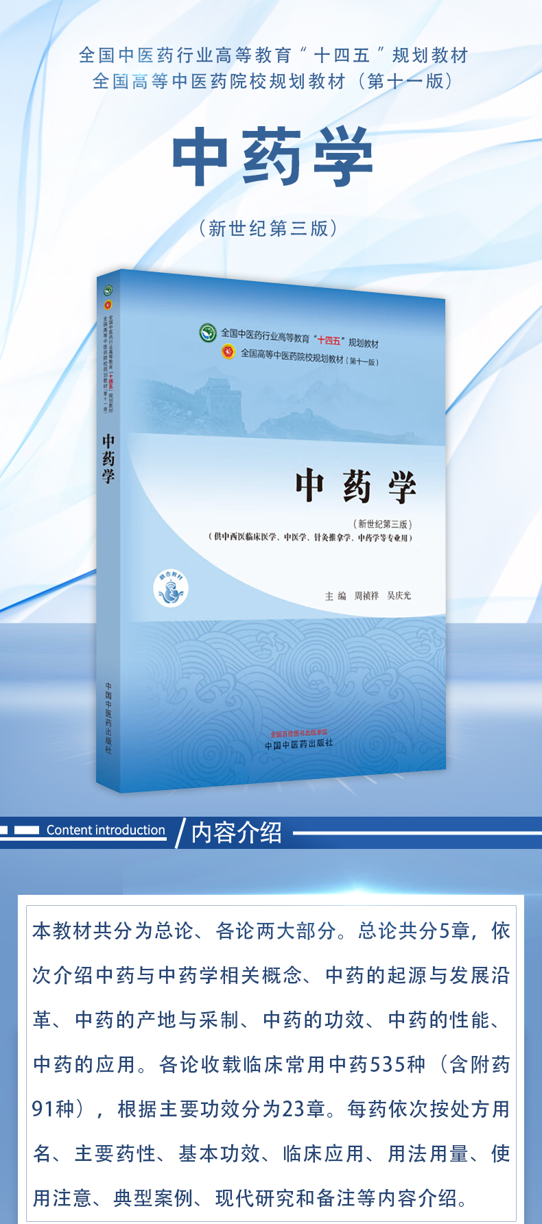 中药学 新世纪第三3版 十四五规划教材全国高等中医药院校规划教材(第十一版)周祯祥 吴庆光 供中西医临床医学等专业用中国中医药出版社