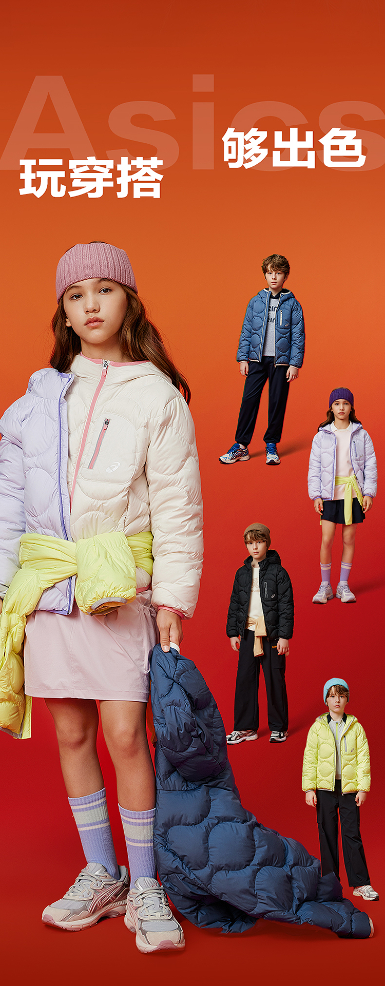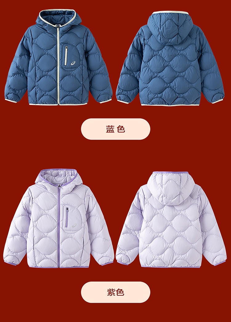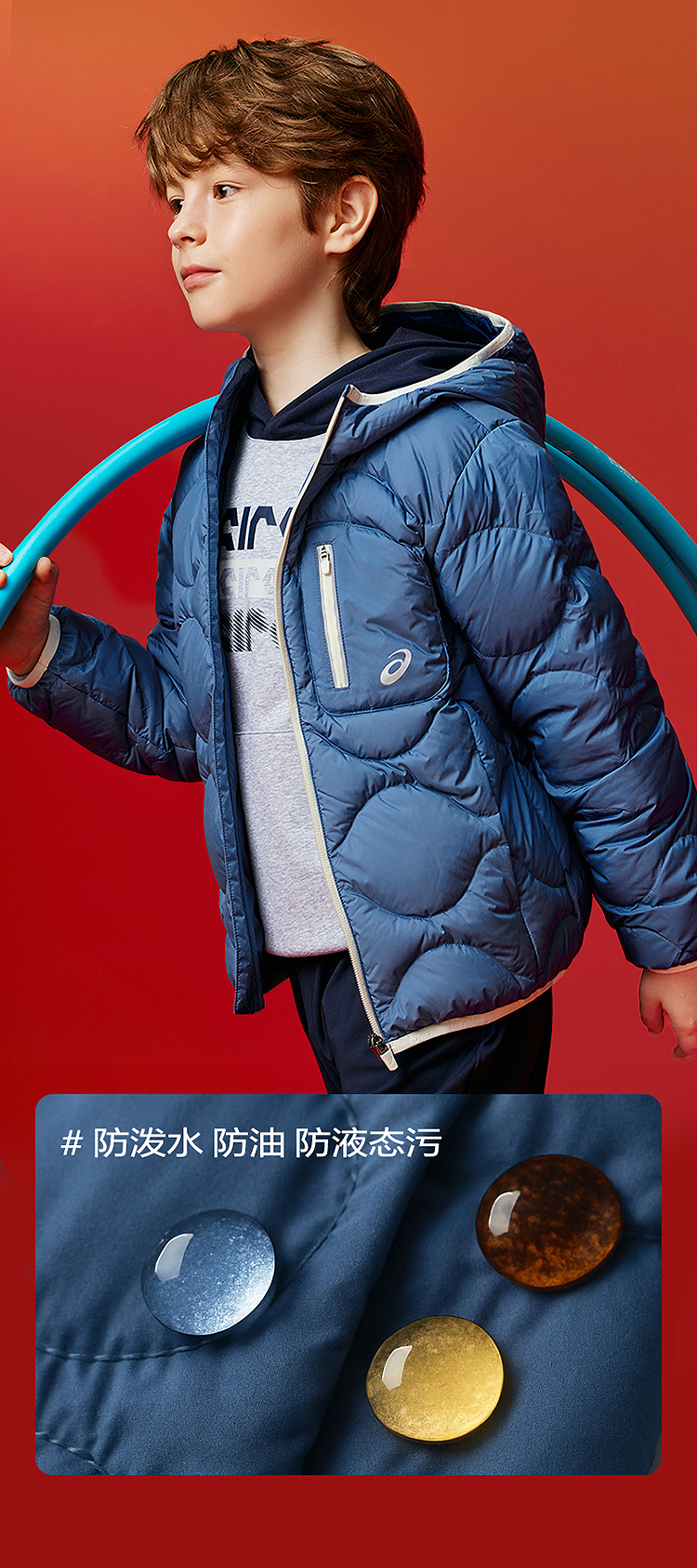 ASICS/亚瑟士童装25年冬季中大童短款三防羽绒服外套宽松轻量保暖